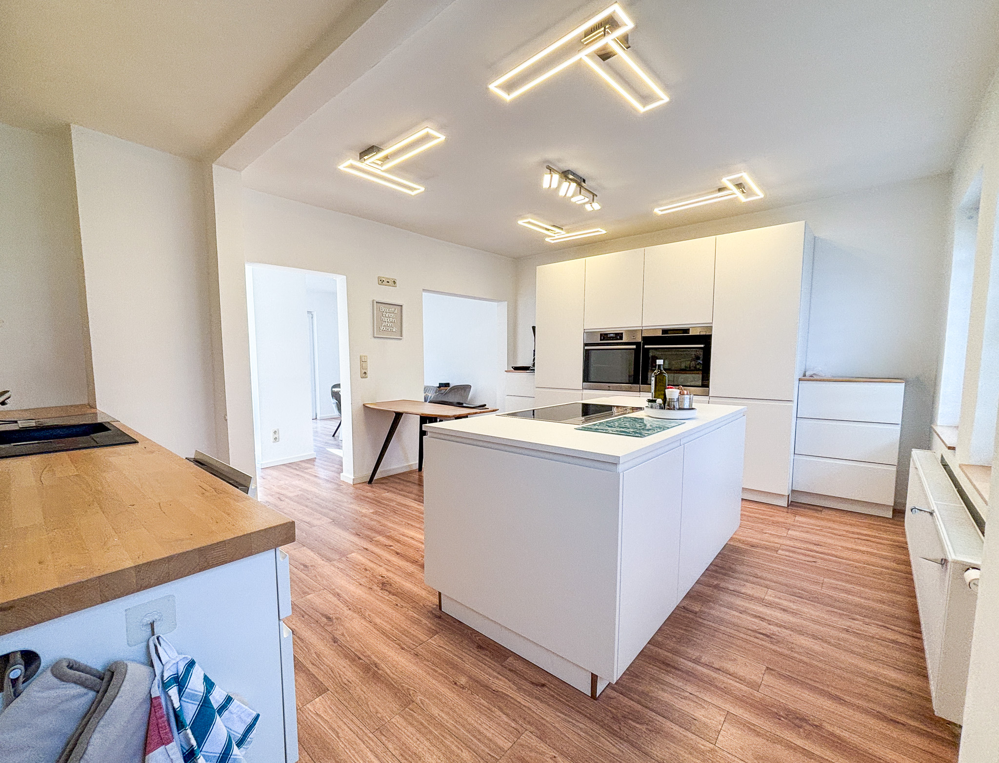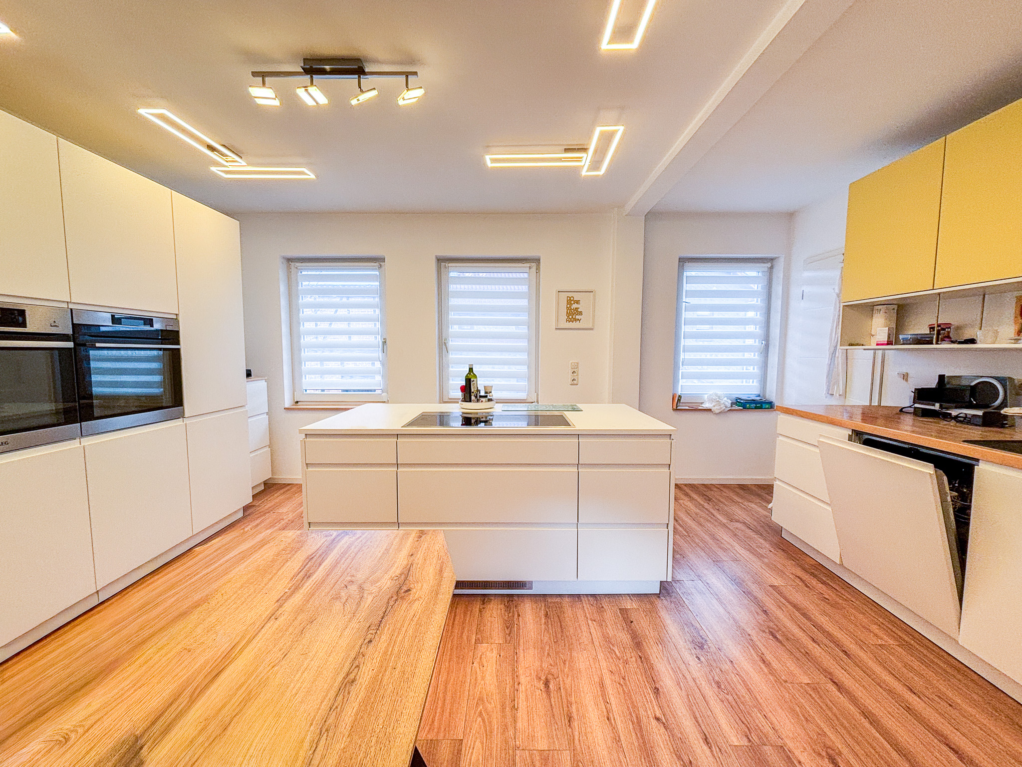 – Große, hochwertige Einbauküche mit Kochinsel und separater Speisekammer