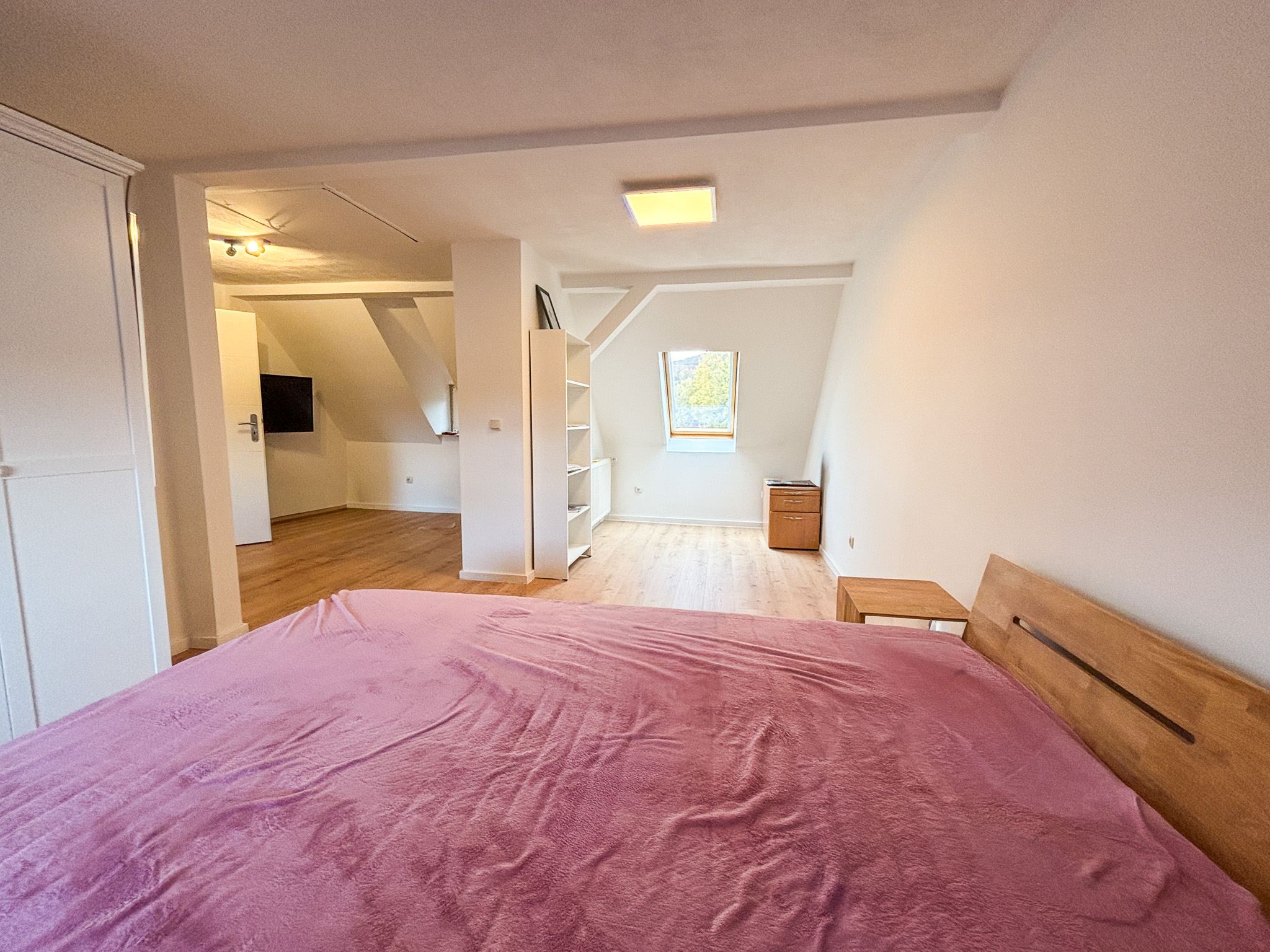 Im Obergeschoss verbinden sich geschickt Funktionalität und Gemütlichkeit: Ein zentraler Aufenthaltsbereich, zwei Schlafzimmer und ein durchdachtes Raumkonzept schaffen hier eine familiäre und doch individuelle Atmosphäre. Und ganz oben? Da wartet ein Dachgeschoss, das mehr ist als nur ein Dach über dem Kopf: ein Rückzugsort mit Stil und viel Potenzial – sei es für das jugendliche Kind, das eigene Homeoffice oder ein kleines Refugium für Gäste.