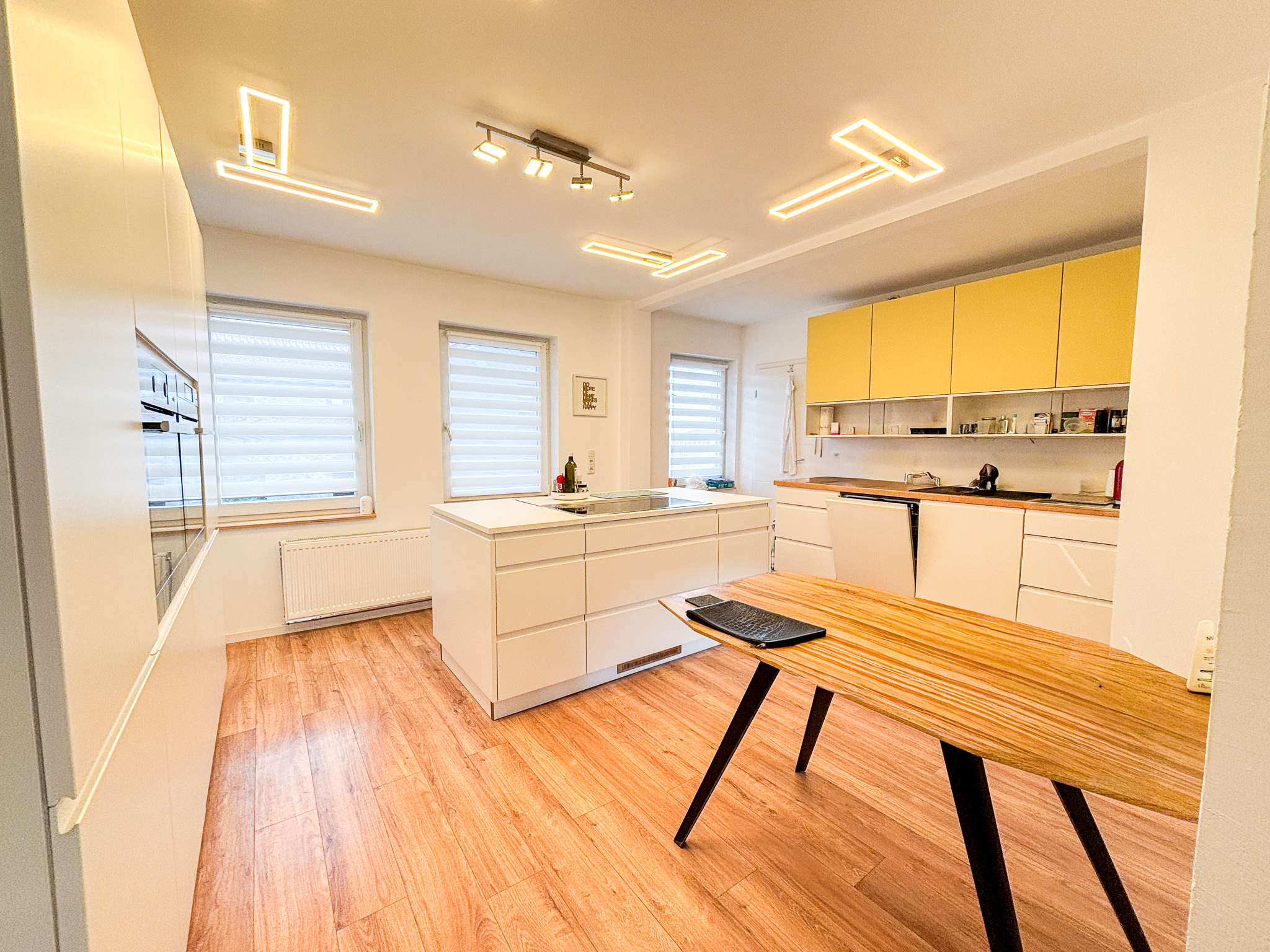 Die gelungene Raumaufteilung bietet zahlreiche Möglichkeiten für modernes Familienleben. Im Erdgeschoss empfängt Sie ein großzügiger, lichtdurchfluteter Wohn- und Essbereich mit direktem Zugang zur hochwertigen Küche – dem Herzstück des Hauses. Hier kocht man nicht nur, hier wird gelebt, gelacht und zusammengekommen.
