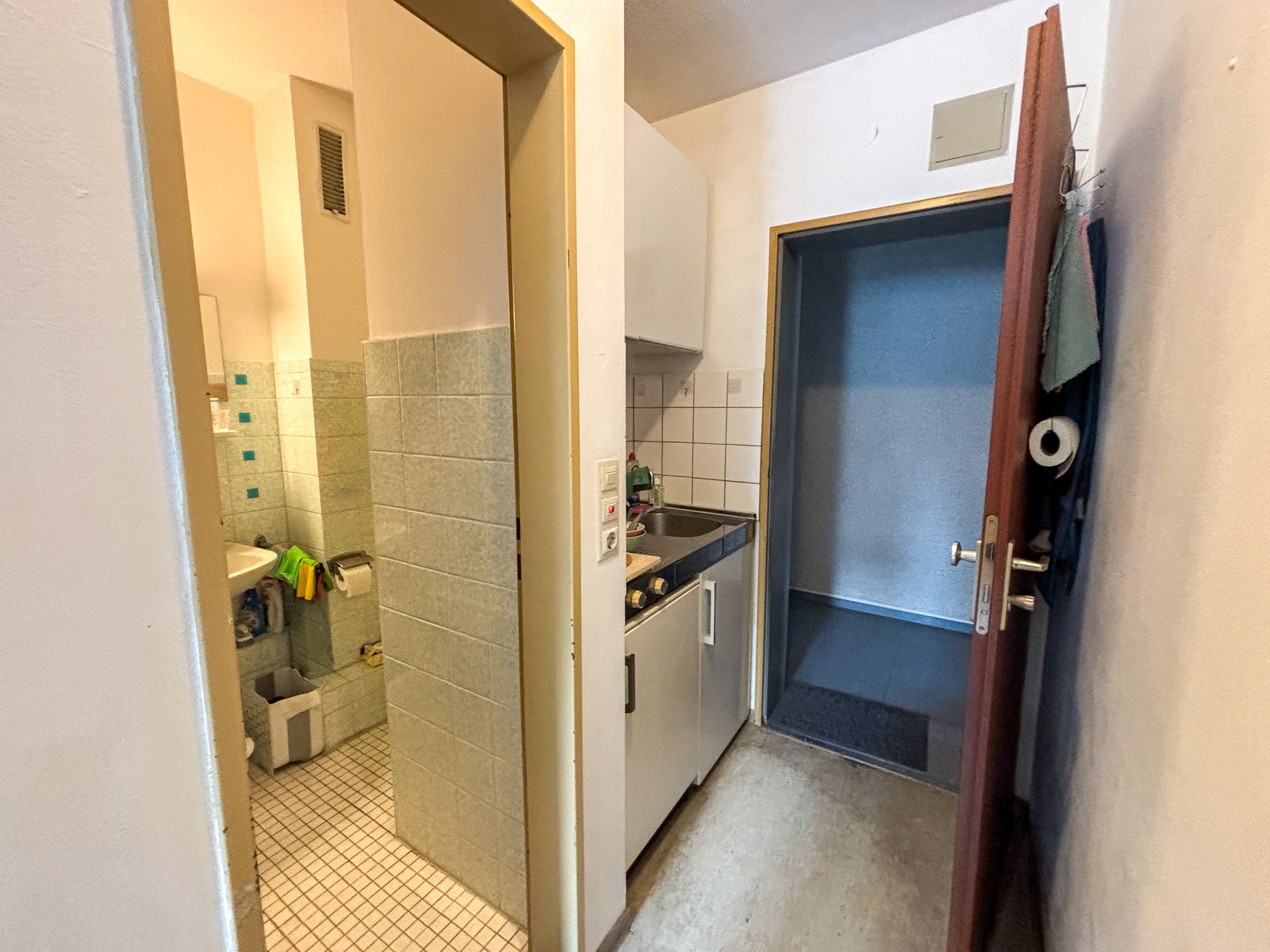Die Wohnung besteht aus einem hellen Wohn-/Schlafbereich mit Küchenzeile, einem praktischen Badezimmer.
