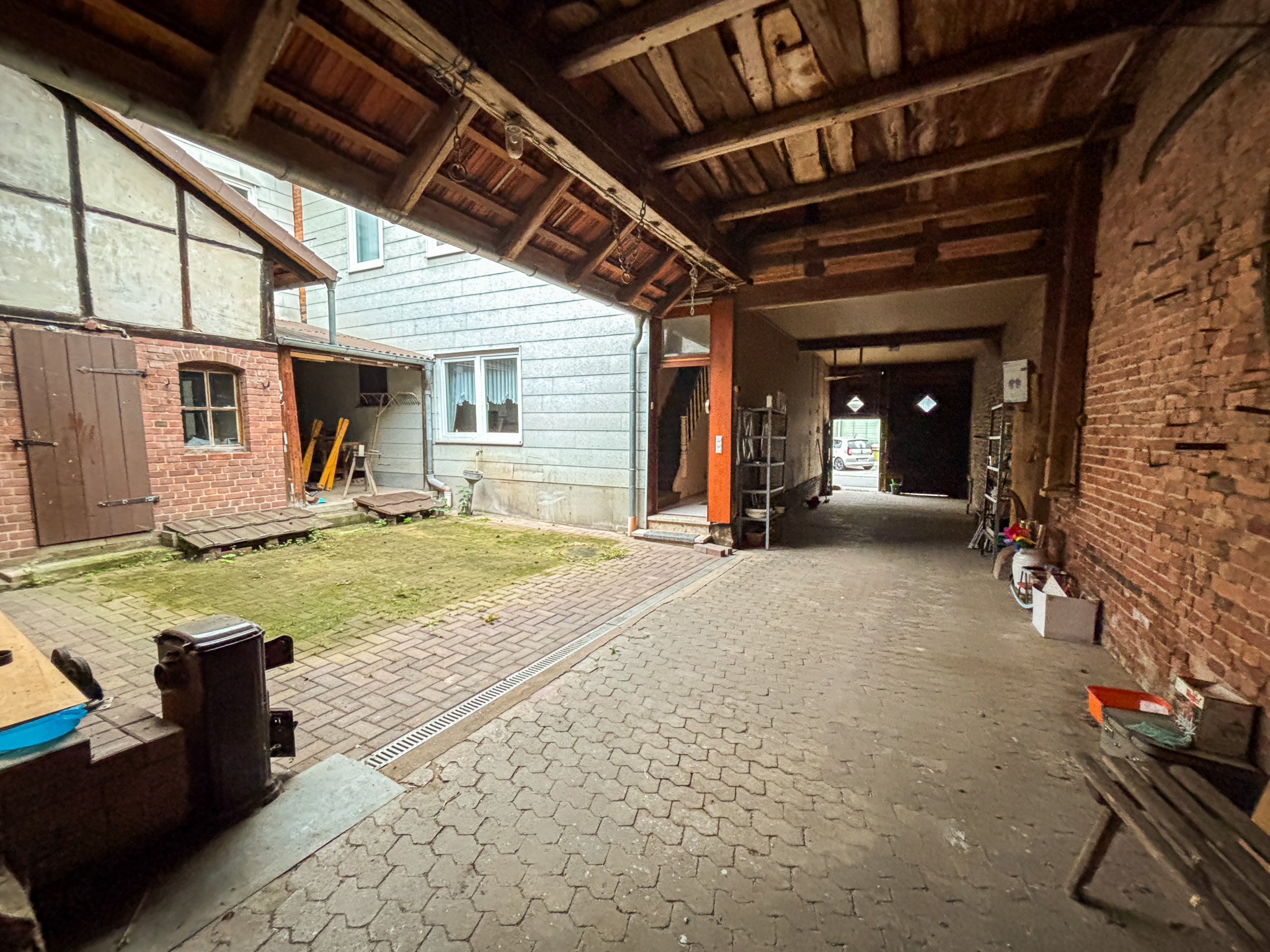 Ein besonderes Highlight: der Innenhof mit großer Toreinfahrt – ideal als geschützter Übergangsraum, Stellplatz oder vielleicht sogar Stellfläche für ein Fahrzeug – und zugleich ein Rückzugsort im Freien. Der große ausbaufähige Dachboden gibt Ihnen zusätzliches Potenzial, je nachdem wie Ihre Wünsche aussehen. Der Vorratskeller, direkt an die Küche angeschlossen, erleichtert logistisch den Alltag – keine eiligen Wege mit Einkaufskisten über lange Wege.