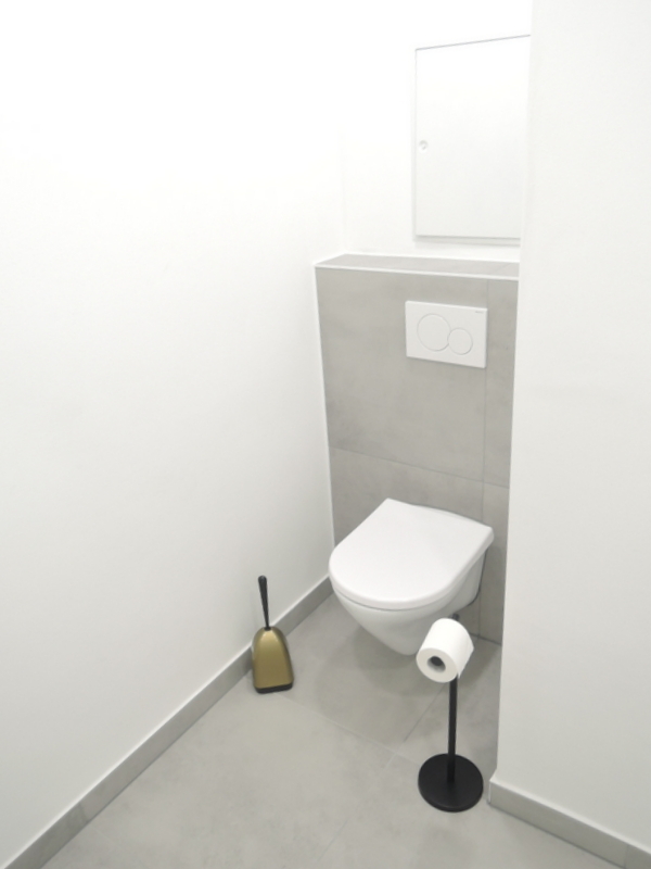 Diese individuell nutzbare, komplett sanierte und helle Gewerbefläche mit ca. 82 m² Fläche, auf zwei Etagen verteilt, befindet sich in zentraler Innenstadtlage. Im Erdgeschoss, mit schwellenlosem Eingang, befindet sich ein geräumiger heller Raum mit Schaufensterfront sowie ein Aufenthaltsraum, eingerichtet mit einer Pantryküche. Im Obergeschoss, begehbar innerhalb über eine Wendeltreppe, aber auch über einen separaten Eingang über das Treppenhaus, befindet sich ein zweiter geräumiger, heller Raum, ausgestattet mit einer Klimaanlage. Des Weiteren ist im Obergeschoss ein saniertes, ansprechendes Duschbad mit Toilette vorhanden. Die Bodenbeläge sind mit hellgrauen, großformatigen Fliesen ausgelegt.  Als Abstellfläche bietet sich ein Kellerraum an. Ein PKW-Stellplatz befindet sich in der zugehörigen Tiefgarage, befahrbar über die Alte Poststraße.