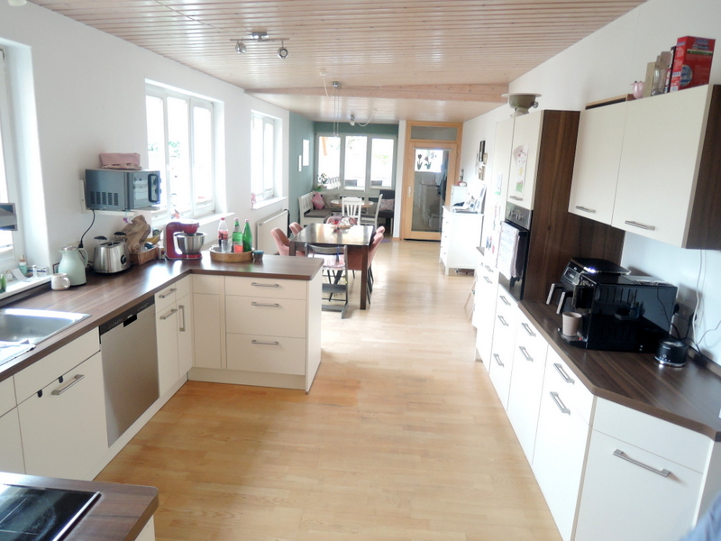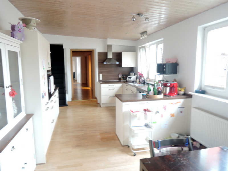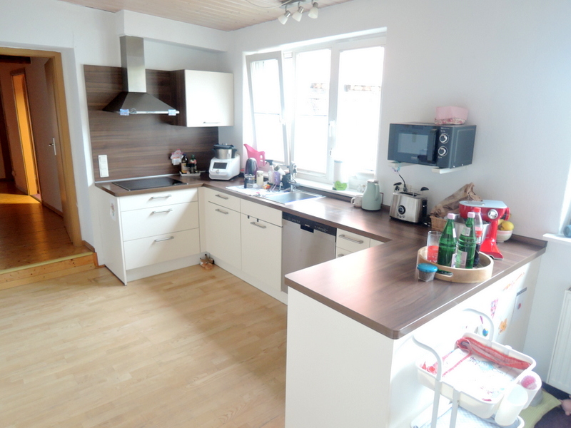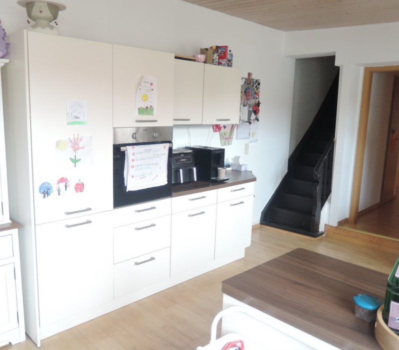 Die große Wohnküche ist mit einer modernen Einbauküche eingerichtet und lädt zu geselligen Stunden ein. Von dort gelangt man in die obere Etage, wo sich ein geräumiges Schlafzimmer und eine Toilette befinden.