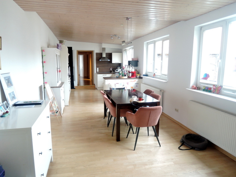 Diese geräumige Etagenwohnung liegt im 1. Obergeschoss eines Wohn- und Geschäftshauses und bietet ca. 160 m² Wohnfläche, verteilt auf zwei Etagen. Die Wohnung hat einen eigenen Eingang und verfügt über insgesamt 4,5 Zimmer, darunter 3 Schlafzimmer, 2 Badezimmer und 1 Gäste-WC.