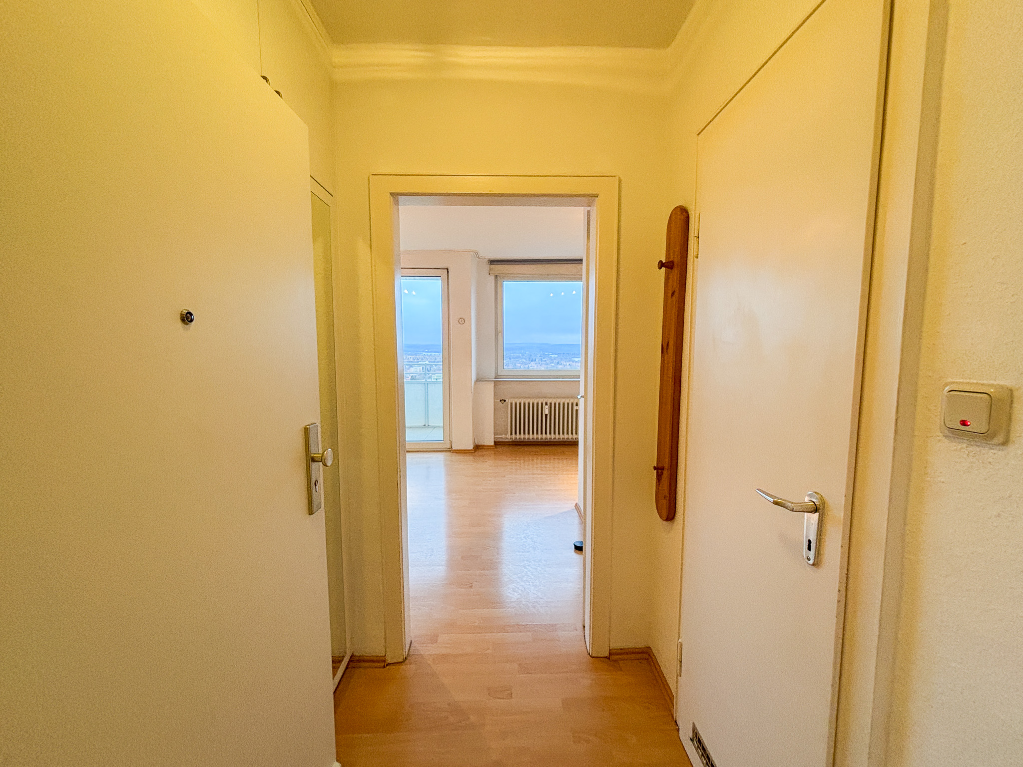 Ein heller Rückzugsort über den Dächern von Göttingens — ein charmantes Einzimmer‑Apartment mit ca. 32 m² Wohnfläche, das alles bietet, was man für ein komfortables und unkompliziertes Wohnen braucht. Die Fensterfronten lassen viel Licht herein und schenken Ihnen bereits am Morgen einen weiten Blick über die Stadt. Der geräumige Balkon lädt dazu ein, den Tag mit einem Kaffee in der Sonne zu beginnen — ob morgens oder bei Sonnenuntergang, mit Panoramablick über Göttingen. Die vorhandene Einbauküche vereinfacht den Start in Ihr neues Zuhause, ohne sich um Küchenausstattung kümmern zu müssen. Im Eingangsbereich finden Sie einen praktischen Wandschrank — ideal für Jacken, Schuhe oder saisonale Kleidung. Das modernisierte Duschbad rundet das Gesamtpaket ab. Da die Wohnung im dritten Obergeschoss liegt, ein Aufzug vorhanden ist und der Zugang erleichtert, eignet sie sich nicht nur für Berufstätige oder Studierende, sondern auch für Personen, denen eine leichte Erreichbarkeit wichtig ist — ggf. sogar seniorengerecht.