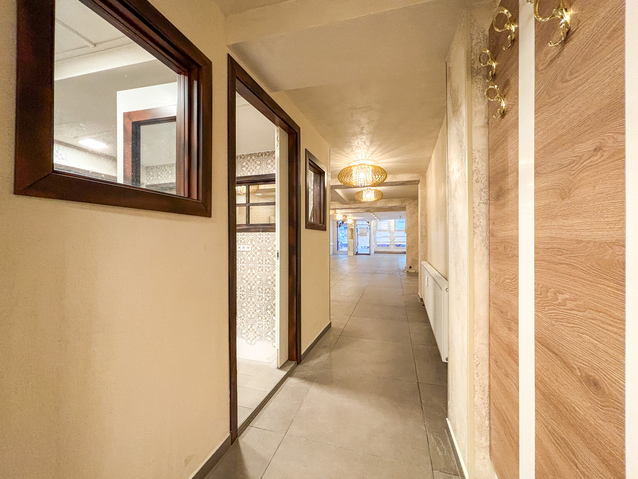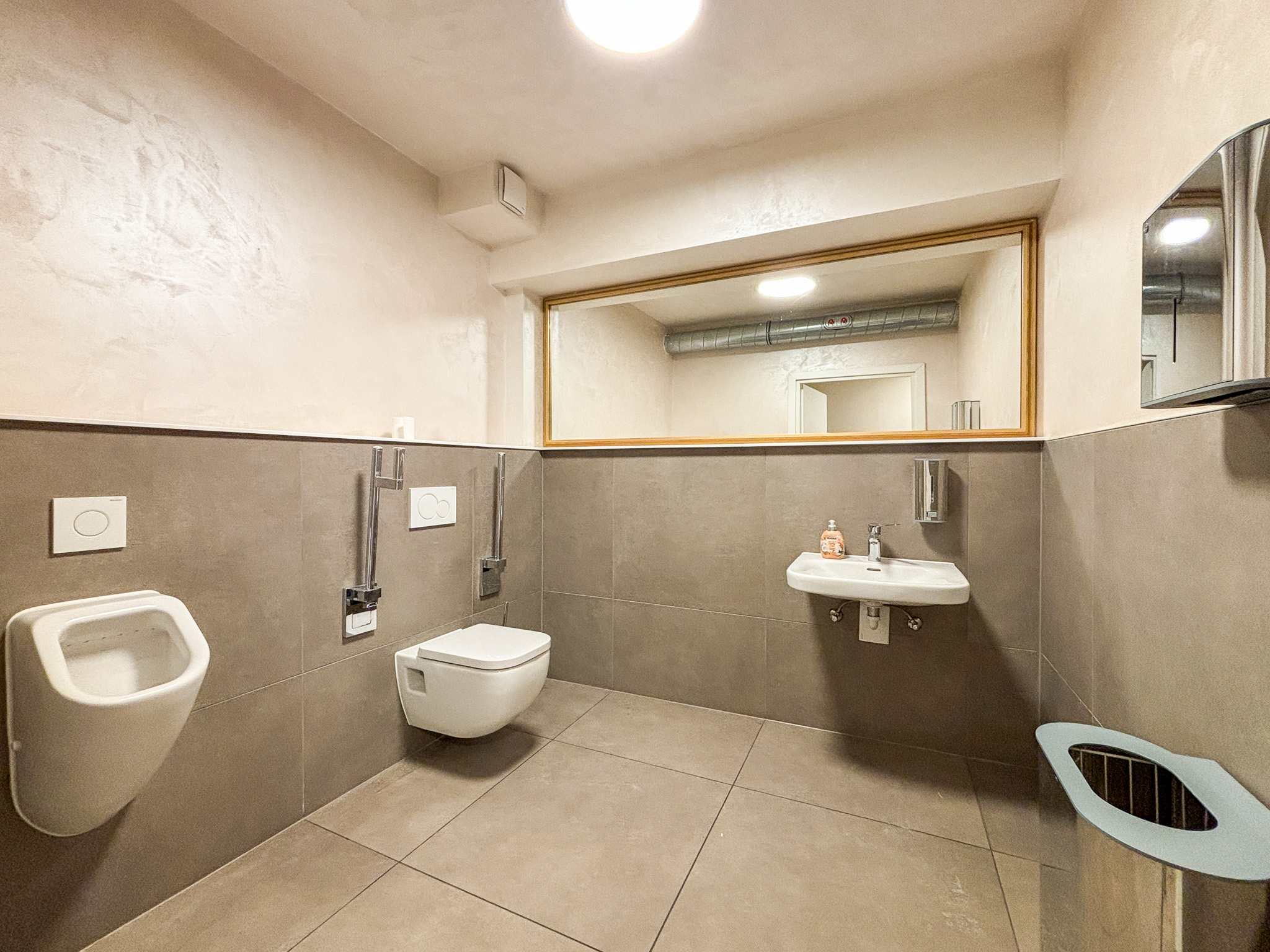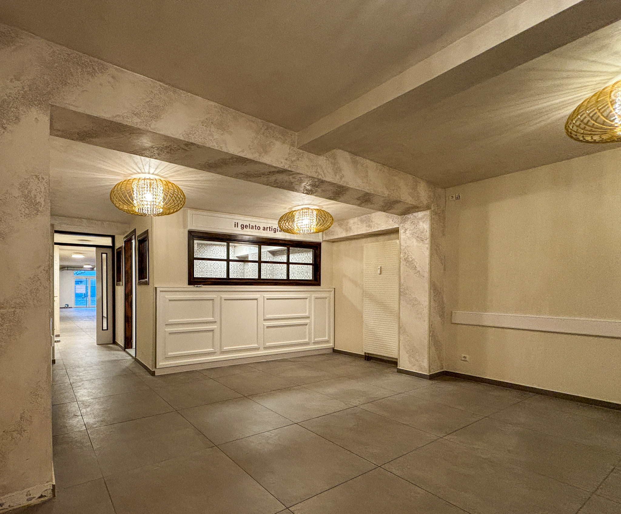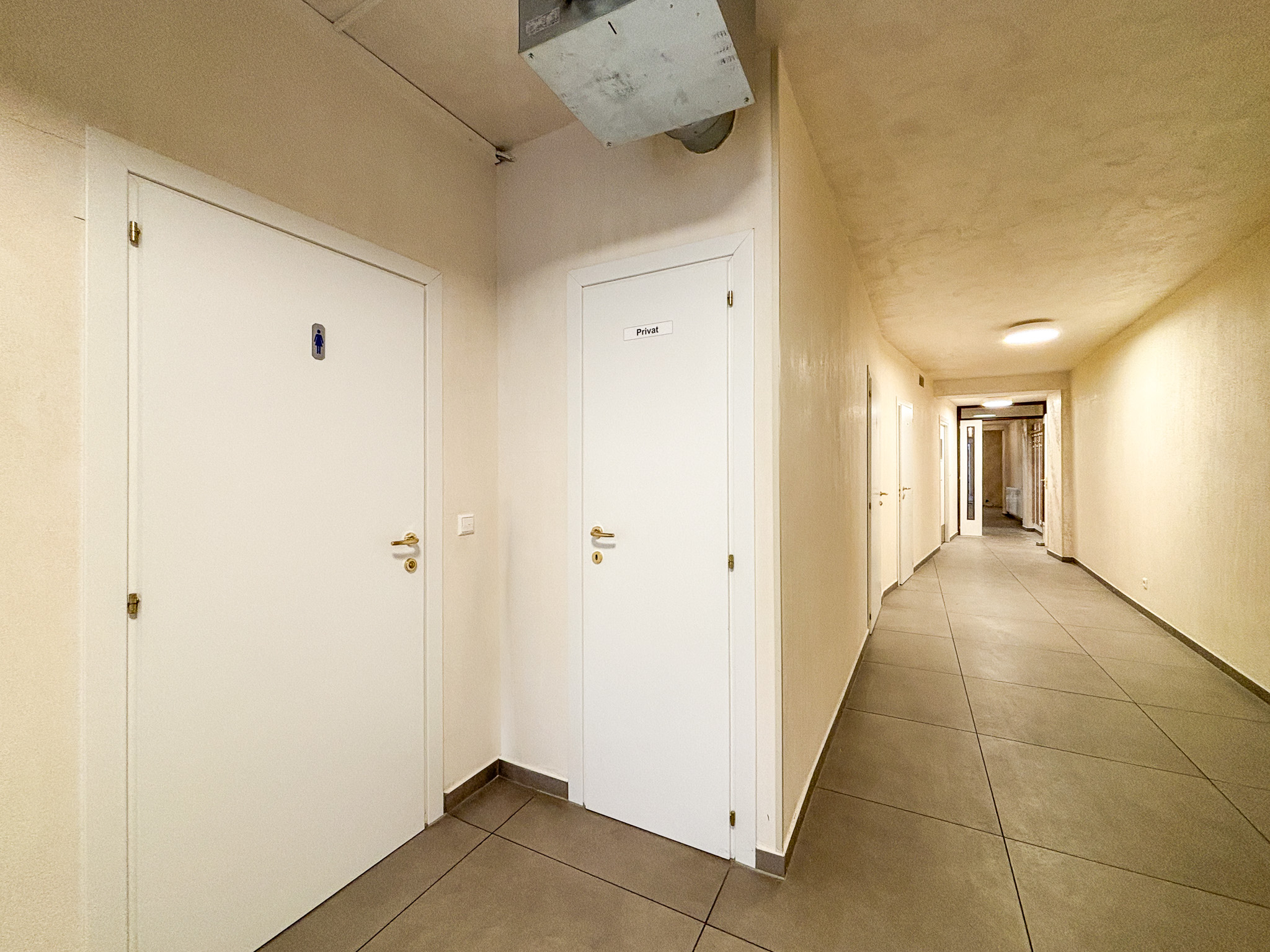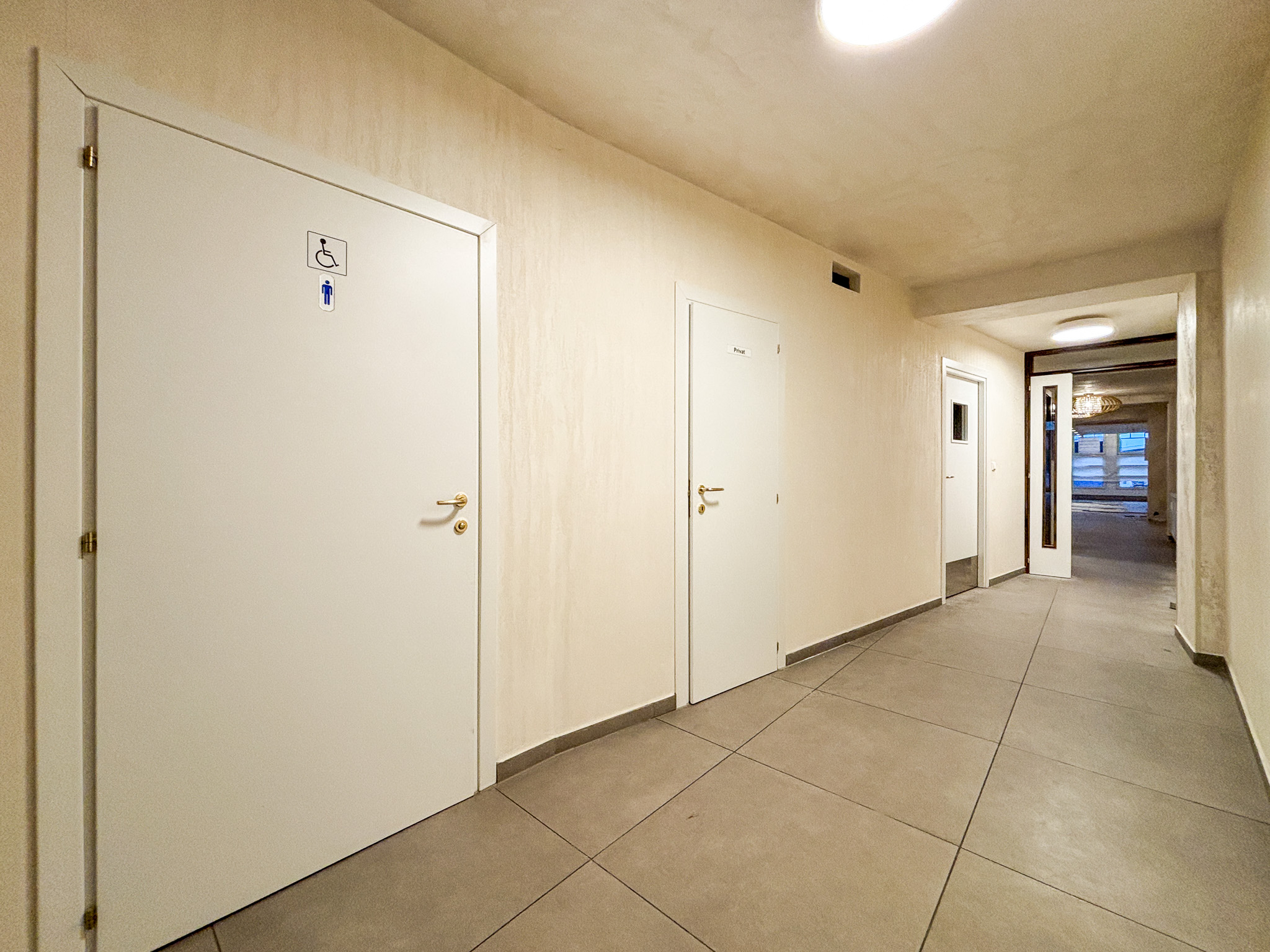 Im vorderen Bereich gibt es eine große Ladenfläche, die sofort einladend wirkt — und direkt angrenzend einen abtrennbaren Bereich, völlig flexibel nutzbar: Sie können ihn öffnen, als eigenständigen Raum nutzen oder in den Verkaufsraum integrieren. Im hinteren Bereich befindet sich zusätzlich ein Sozialraum mit Küche, sowie zwei Vorratsräume und getrennte Damen- und Herren-WCs.