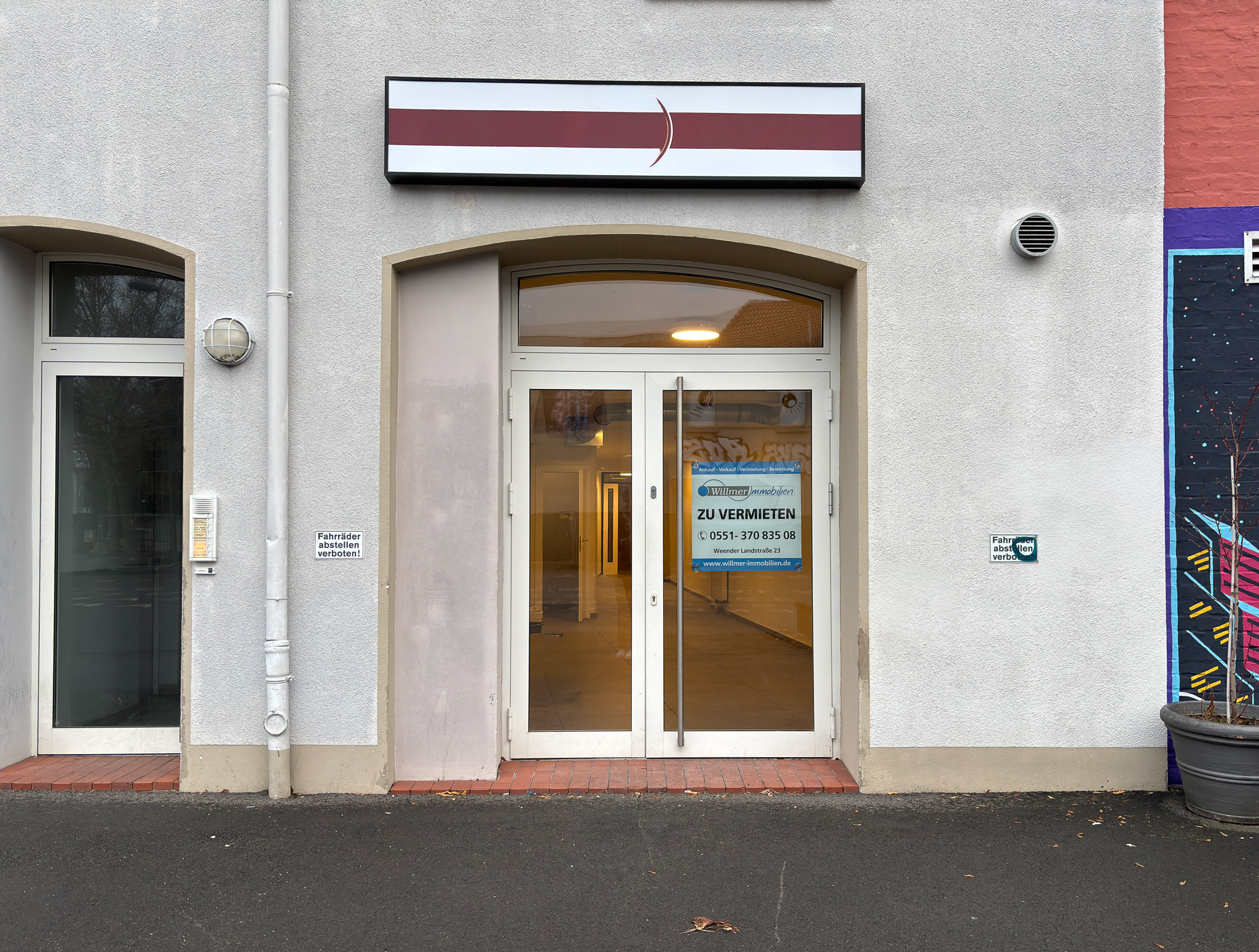 Der Haupteingang öffnet sich zur stark frequentierten Kurze-Geismar-Straße — einer zentralen Einkaufs‑ und Fußgängerzone, direkt gegenüber dem Kaufland Göttingen-Innenstadt — was für maximale Sichtbarkeit, Laufkundschaft und spontane Besuche sorgt. Der zweite Eingang liegt auf der Rückseite des Gebäudes mit Ausrichtung zum Wochenmarkt — ideal für zusätzliche Frequenz, Marktbesucher und flexible Nutzung.