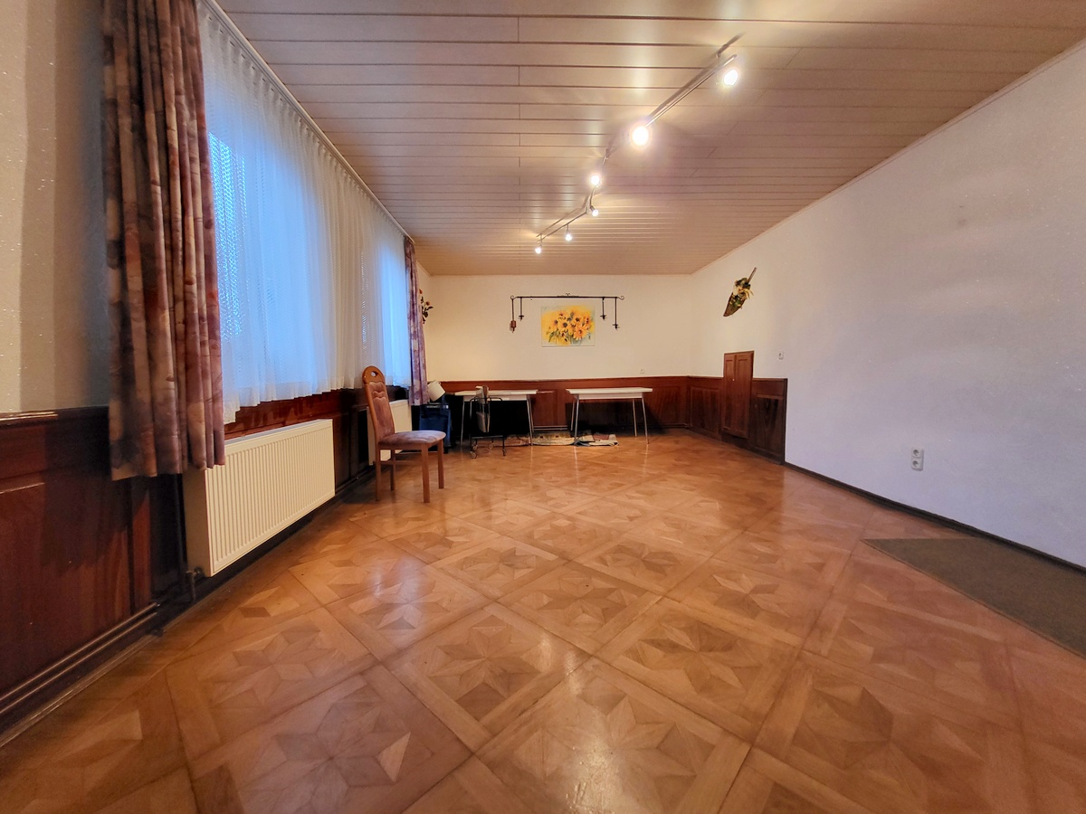 Eine etwas spezielle Immobilie. In das bereits sanierte Erdgeschoß mit 3 Zimmern, Küche und Bad kann man direkt einziehen. Hier sind 94 m² Wohnfläche vorhanden. Das Obergeschoß mit 99 m² kann noch saniert und ausgebaut werden. Hier sind 4 Zimmer und 2 Kammern vorhanden, die aber im derzeitigen Zustand nicht genutzt werden können. Schräge Böden, etwas niedrige Deckenhöhen und seit etwa 50 Jahren nicht mehr renoviert. Ein Fall für Handwerker.