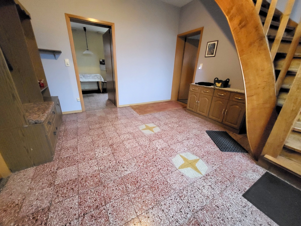 Im Erdgeschoß wurden das Badezimmer und das Gäste-WC bereits saniert. Auch die Küche und die drei Wohnräume sind in gutem Zustand. Das Wohnzimmer mit einem tollen Parkettboden, die anderen Zimmer mit Laminat und Vinylboden. In der Diele befindet sich ein toller, noch völlig intakter Terrazzoboden. Auch die Treppe zum Obergeschoß wurde bereits aufgearbeitet.