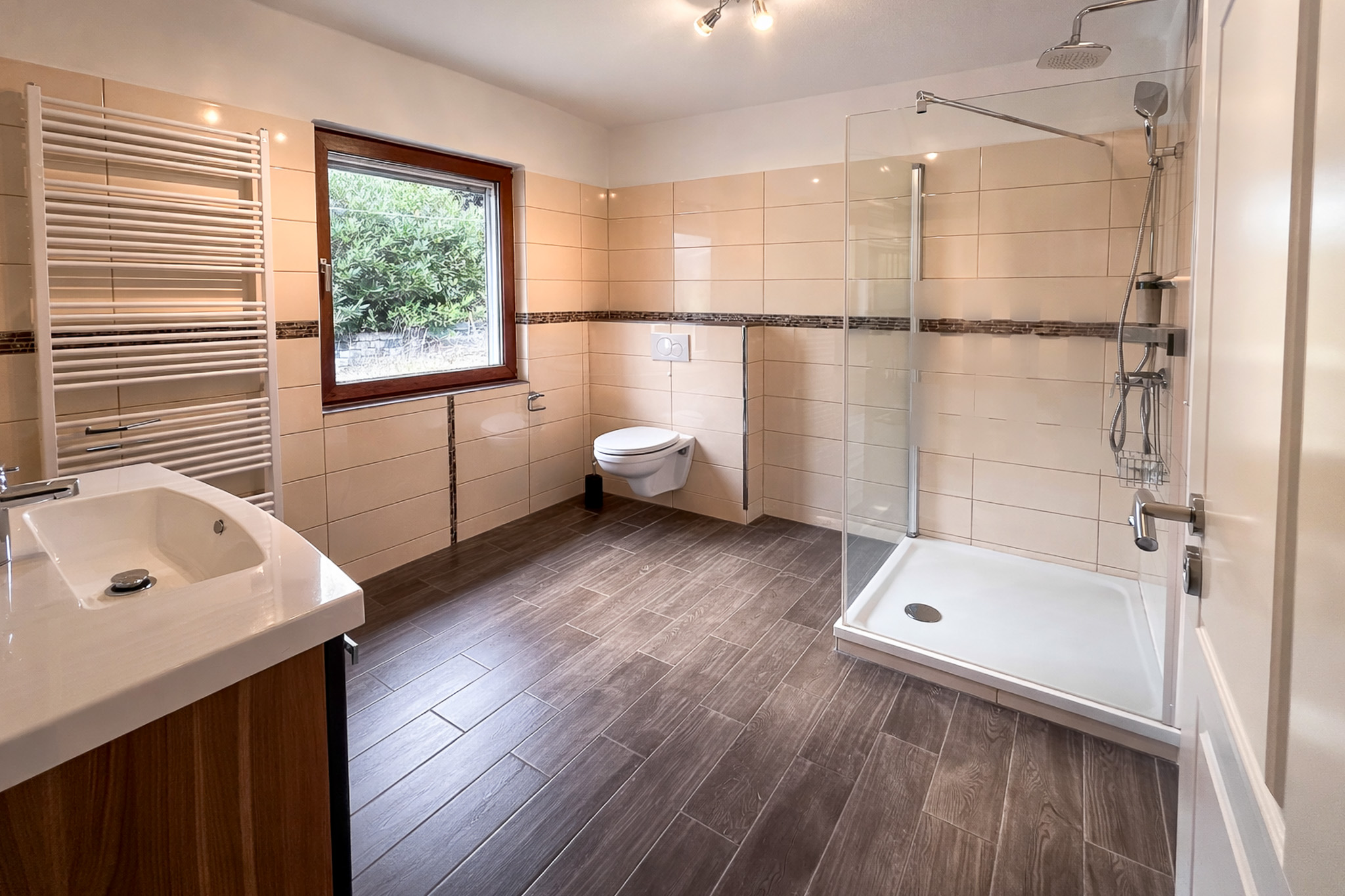 - Ausstattung des Bades Badewanne Dusche Fenster