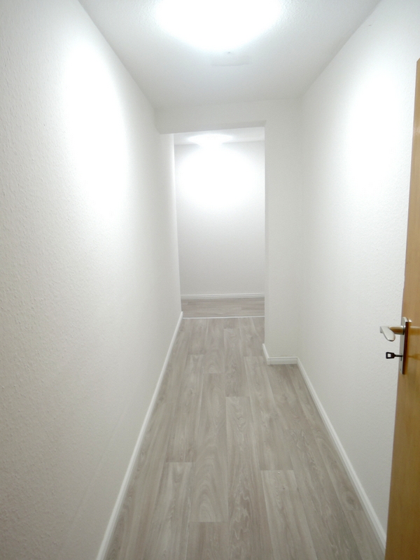 Die Küche ist mit einer Einbauküche, das Badezimmer mit einer Dusche eingerichtet. Am Badezimmer befindet sich ein geräumiger und praktischer Abstellraum, der mit einem Waschmaschinenanschluss ausgestattet ist. Die Bodenbeläge sind mit einheitlichen PVC ausgelegt.