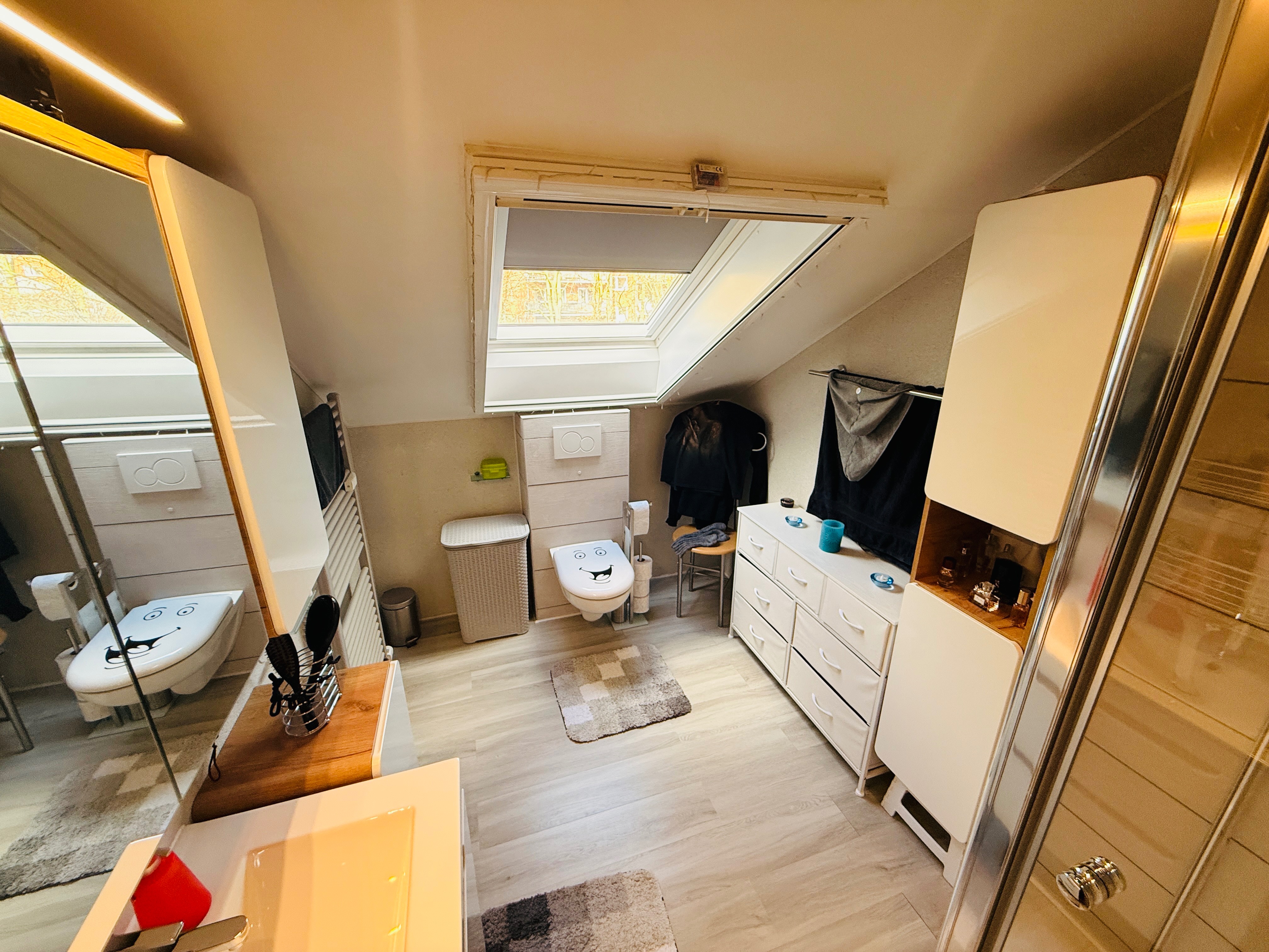 - Ausstattung des Bades Dusche Fenster