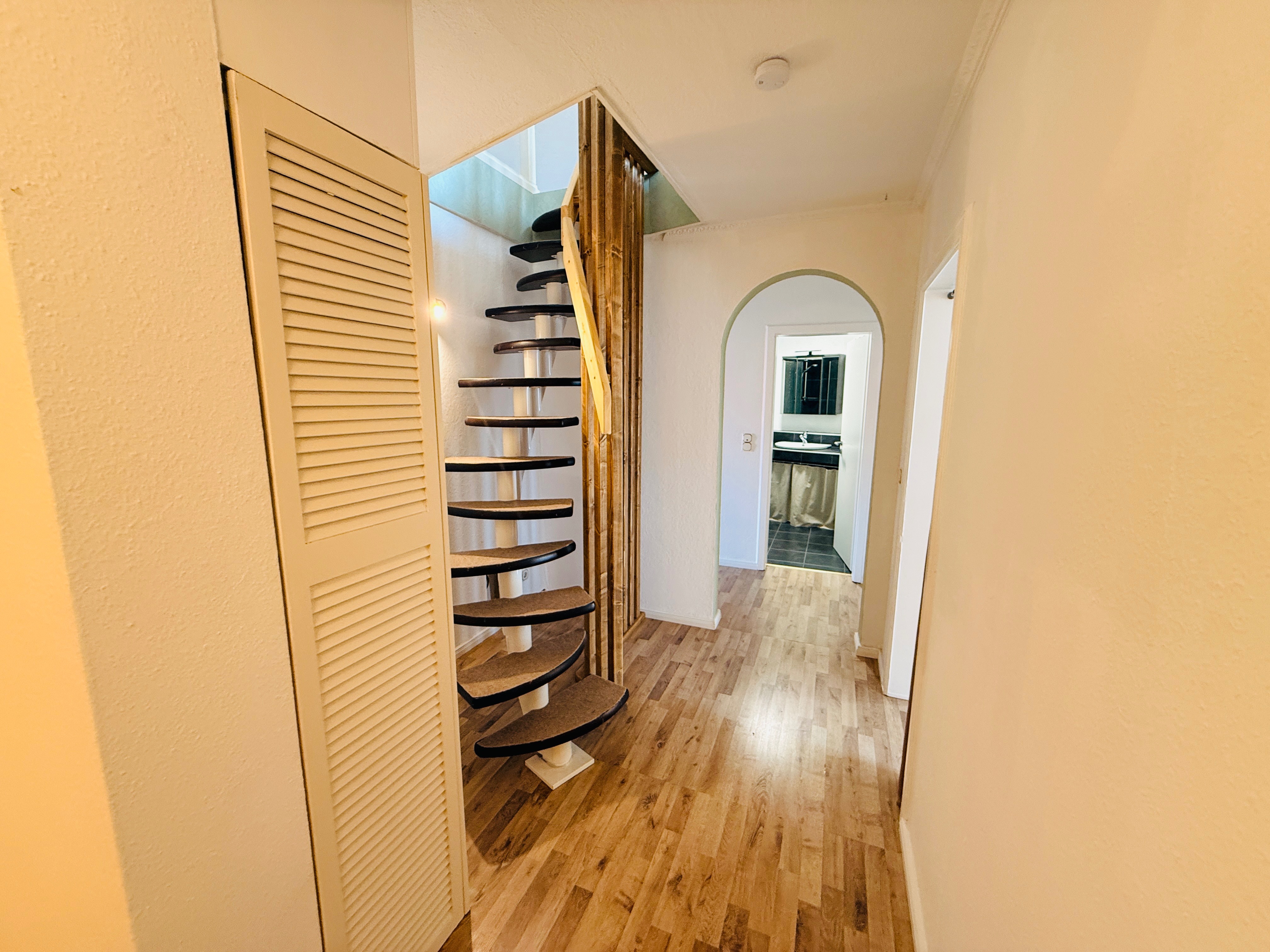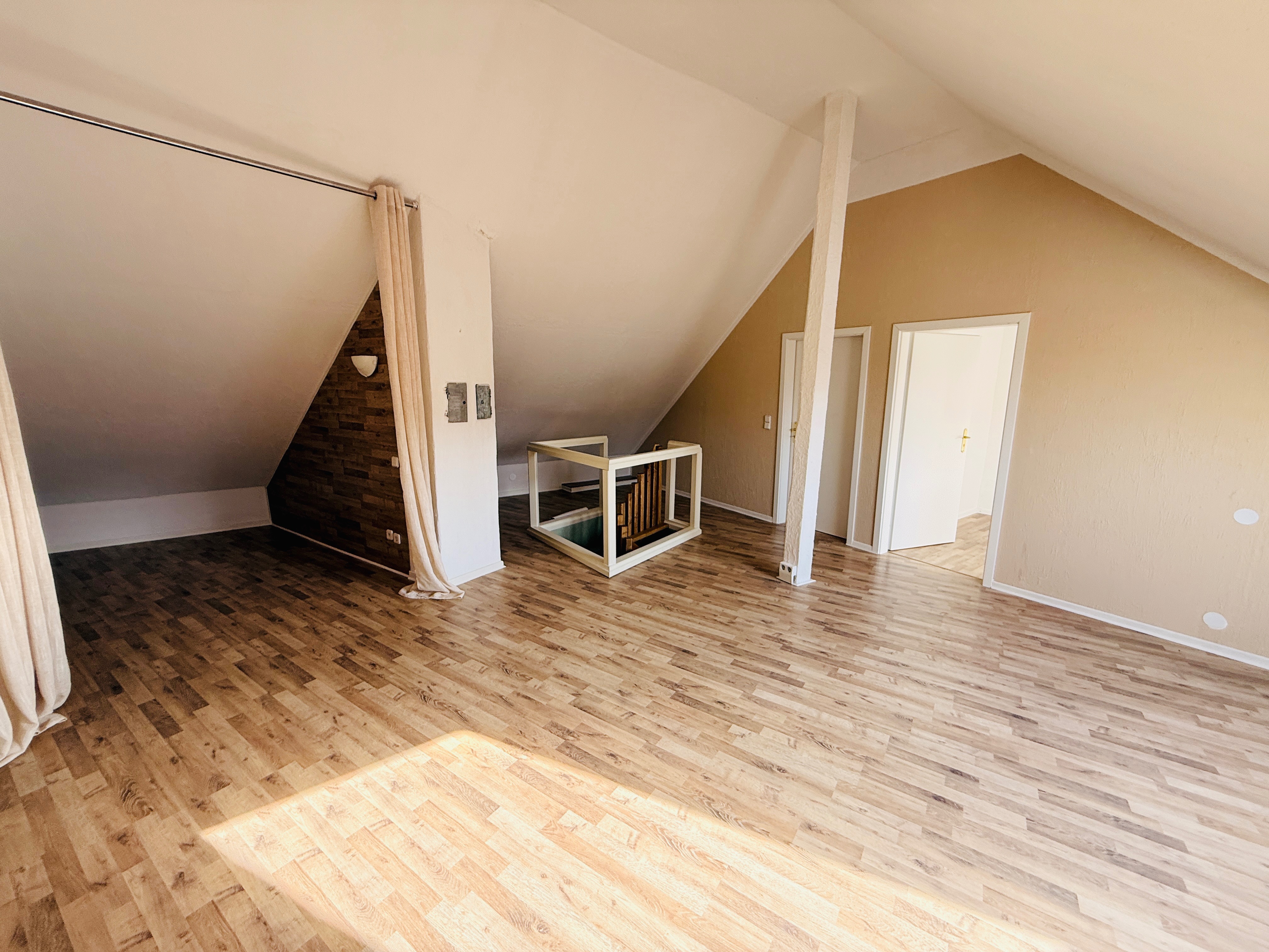 Ein besonderes Highlight der Wohnung ist das ausgebaute Dachgeschoss, das über eine Wendeltreppe direkt aus der Wohnung erreichbar ist. Hier befinden sich ein großes Wohn- bzw. Schlafzimmer, ein weiteres Zimmer sowie ein praktischer Abstellraum.