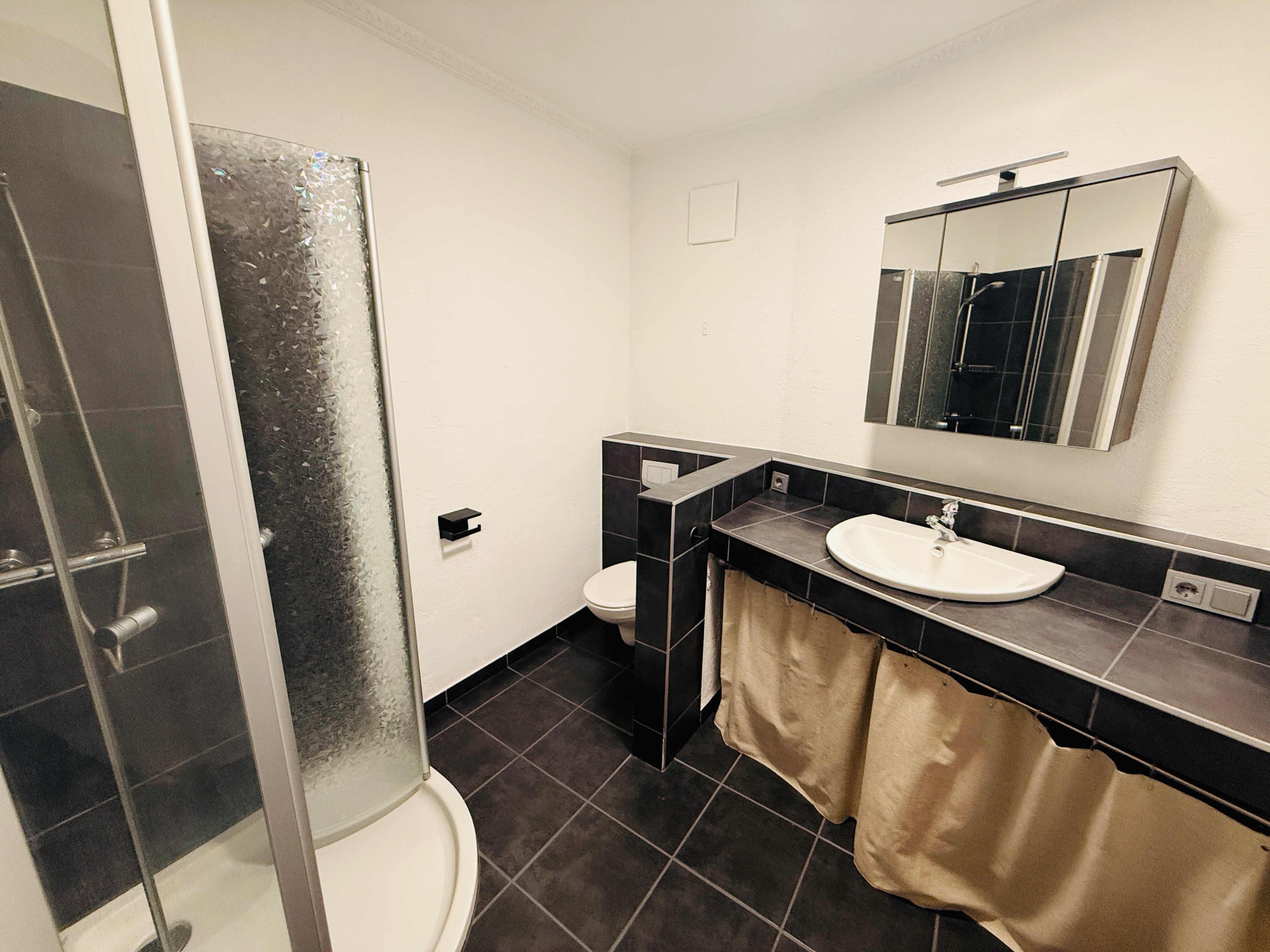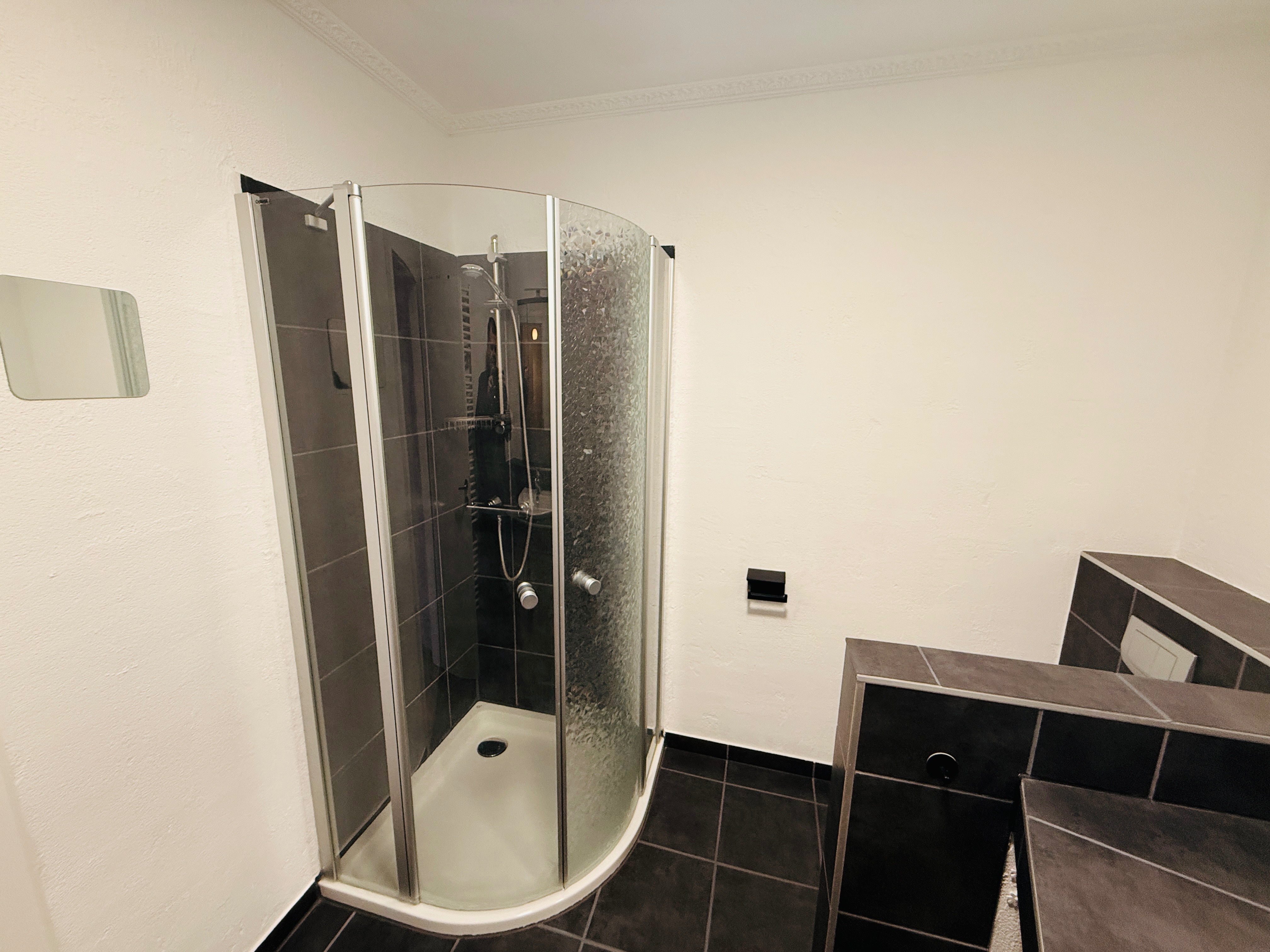 Neben dem Schlafzimmer steht ein weiteres Zimmer zur Verfügung, das als Büro oder Ankleidezimmer genutzt werden kann. Dieses Zimmer ist als Durchgangszimmer gestaltet und schließt direkt an das Schlafzimmer an. Das modern ausgestattete Badezimmer verfügt über eine Dusche und präsentiert sich in zeitgemäßem Zustand. Ergänzt wird das Raumangebot durch einen separaten Waschmaschinenraum mit zusätzlichem Gäste-WC.