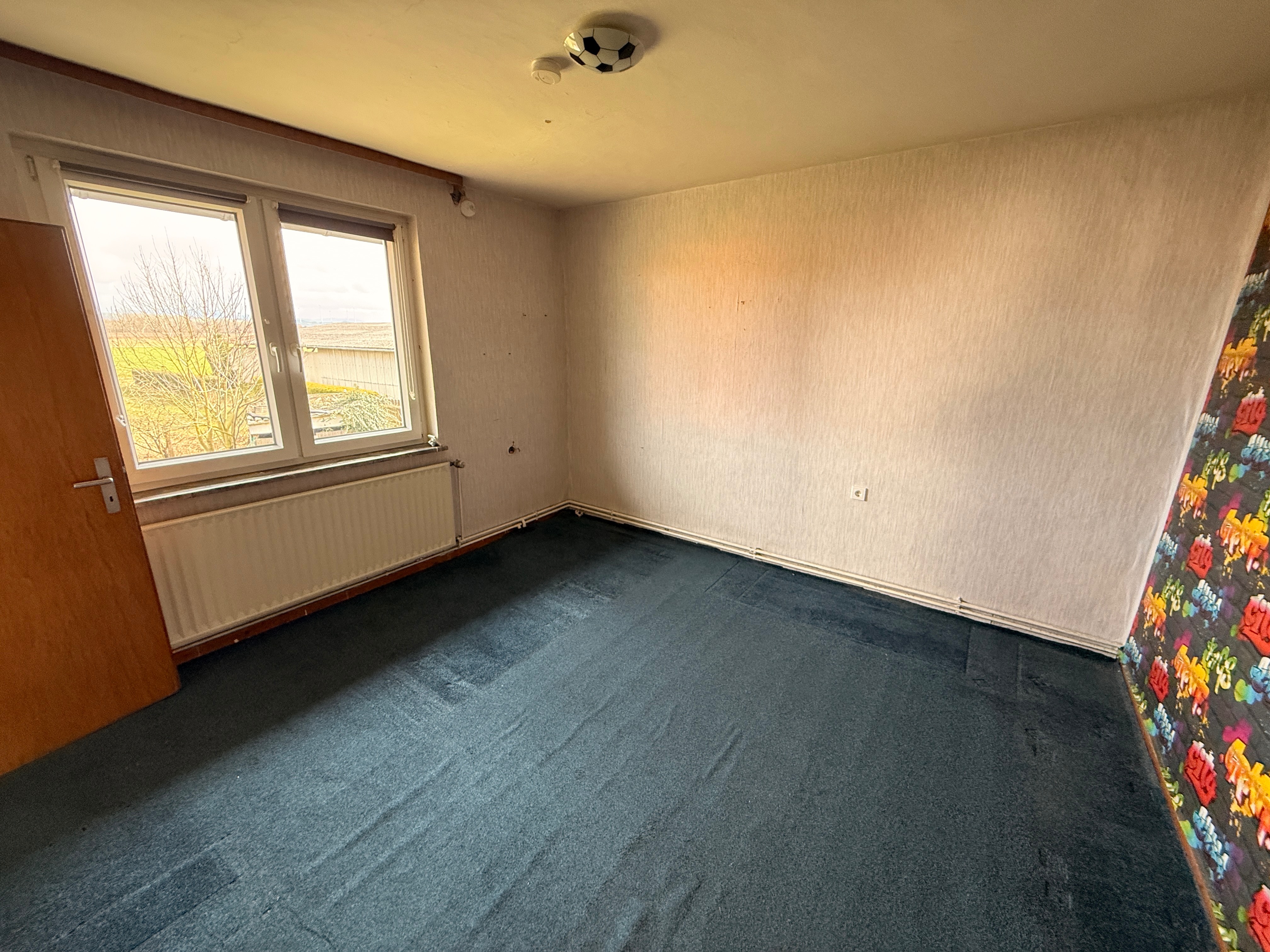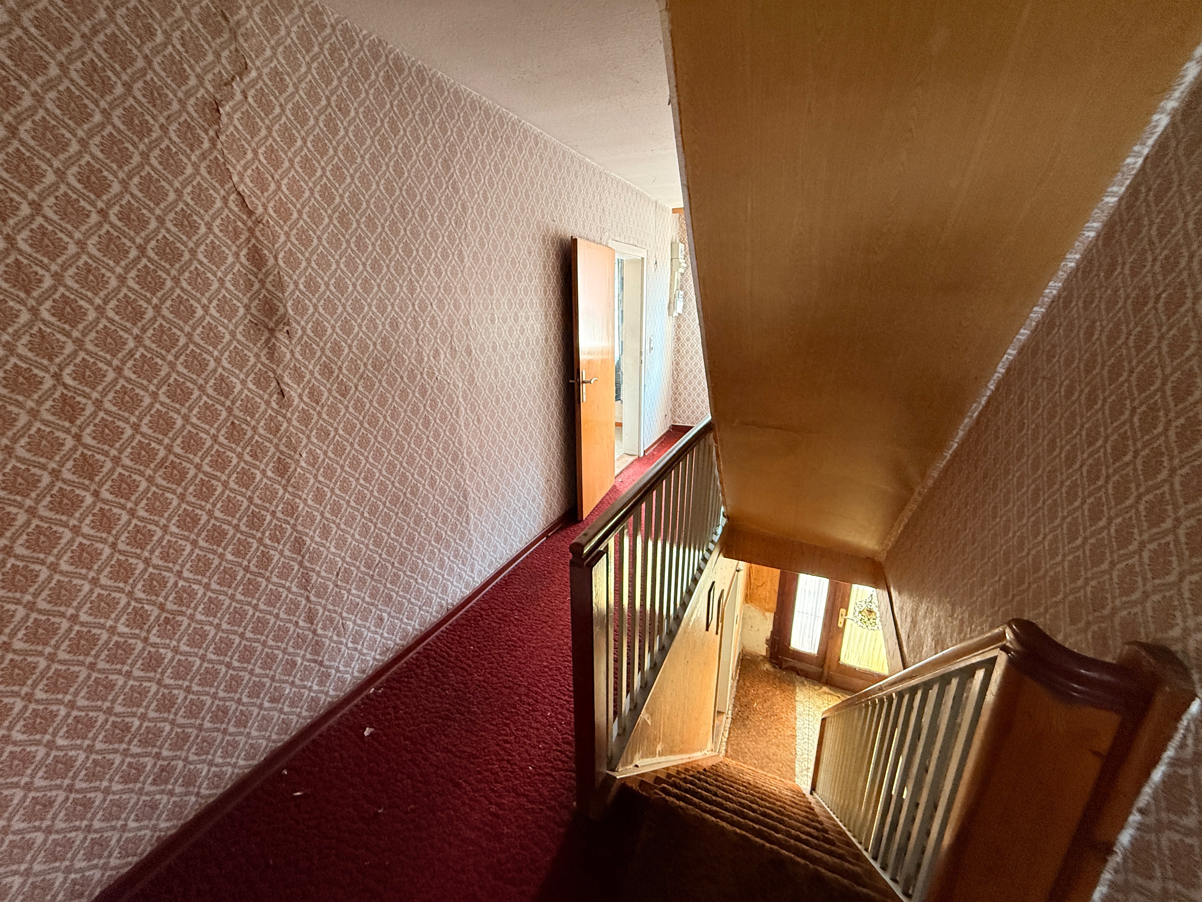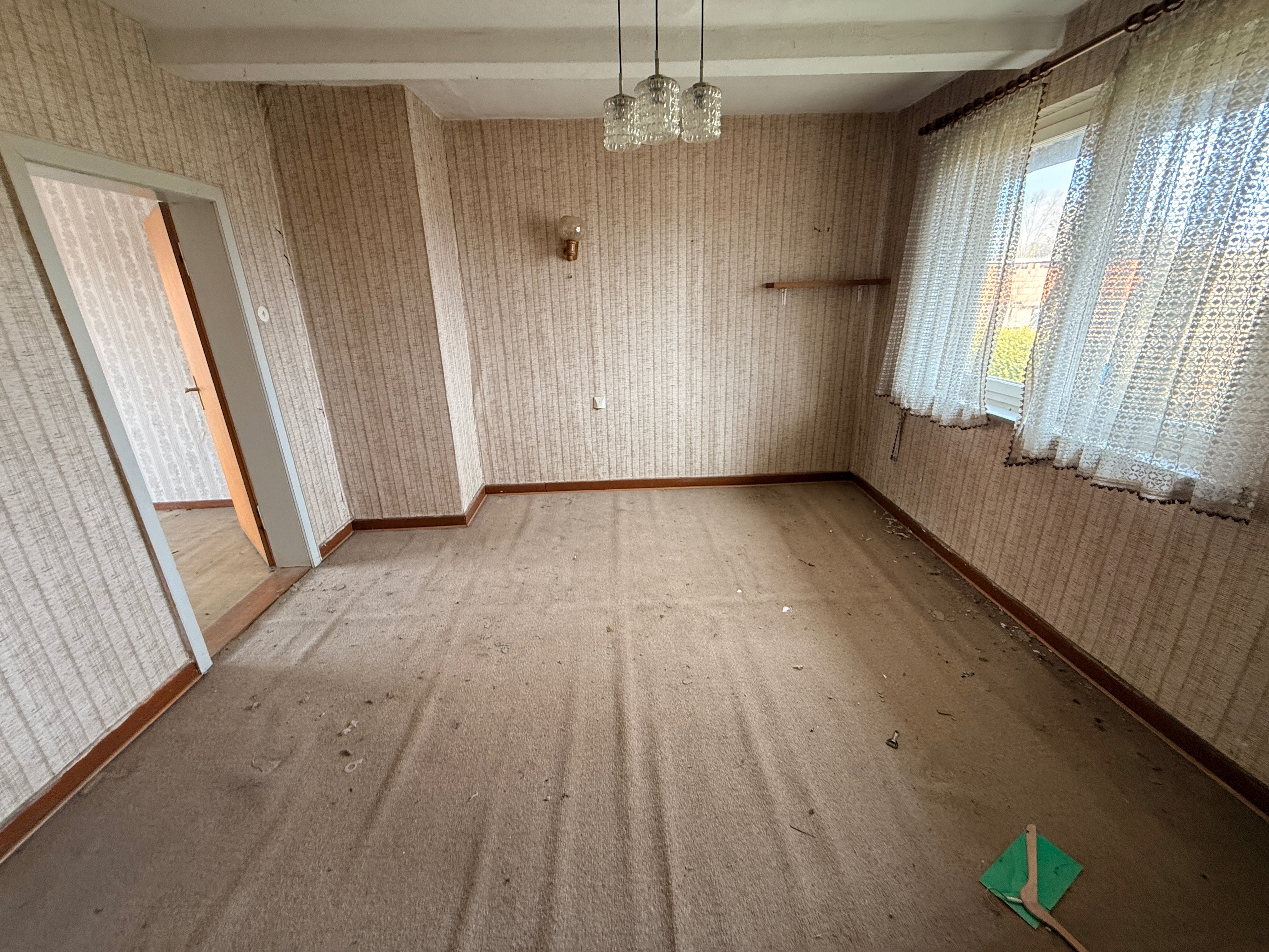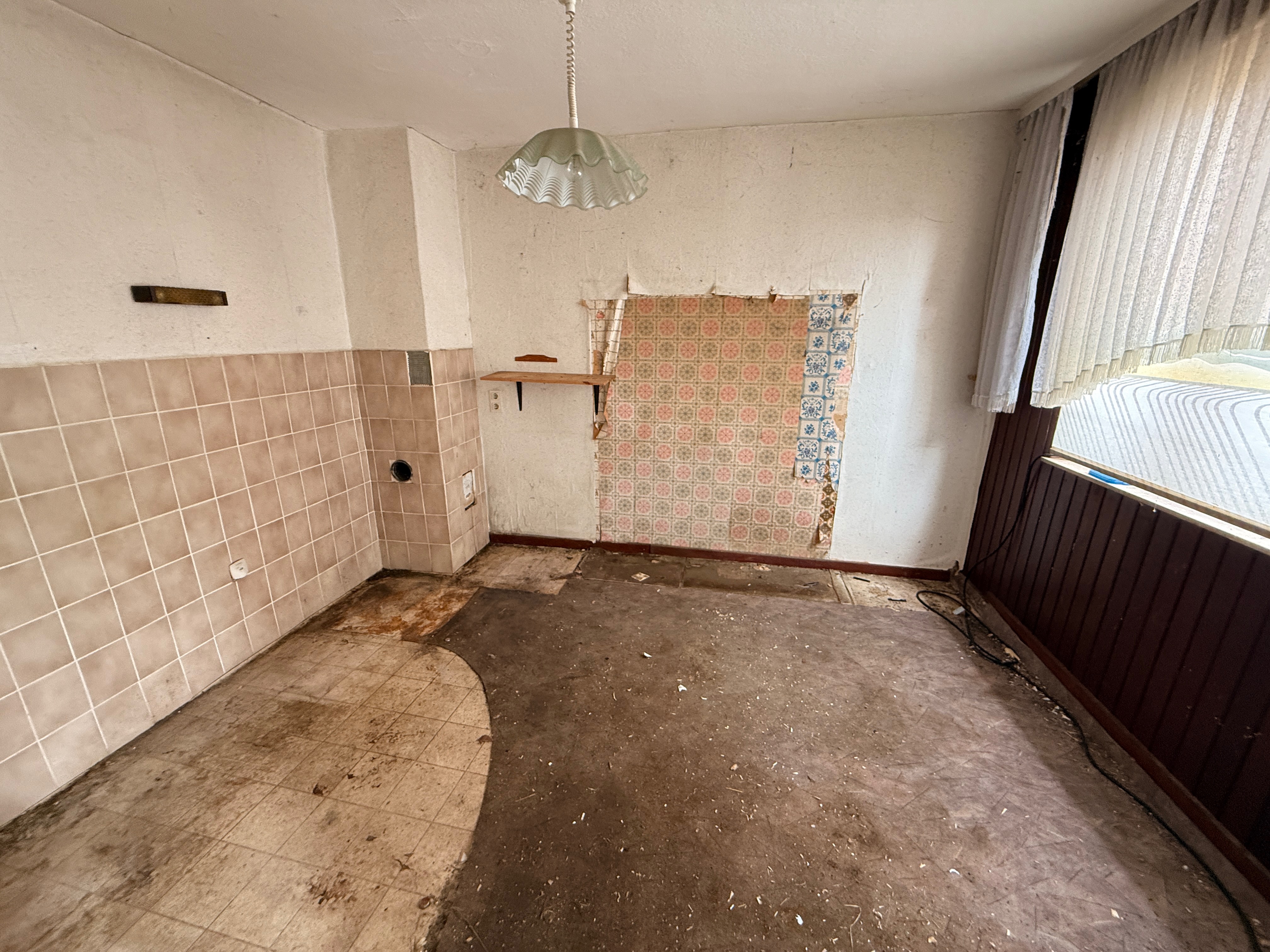 Die rechte Hälfte des Hauses umfasst insgesamt fünf Zimmer sowie eine Küche. Dieser Bereich ist vollständig sanierungsbedürftig und bietet somit die Möglichkeit zur individuellen Neugestaltung oder Erweiterung der Wohnfläche.