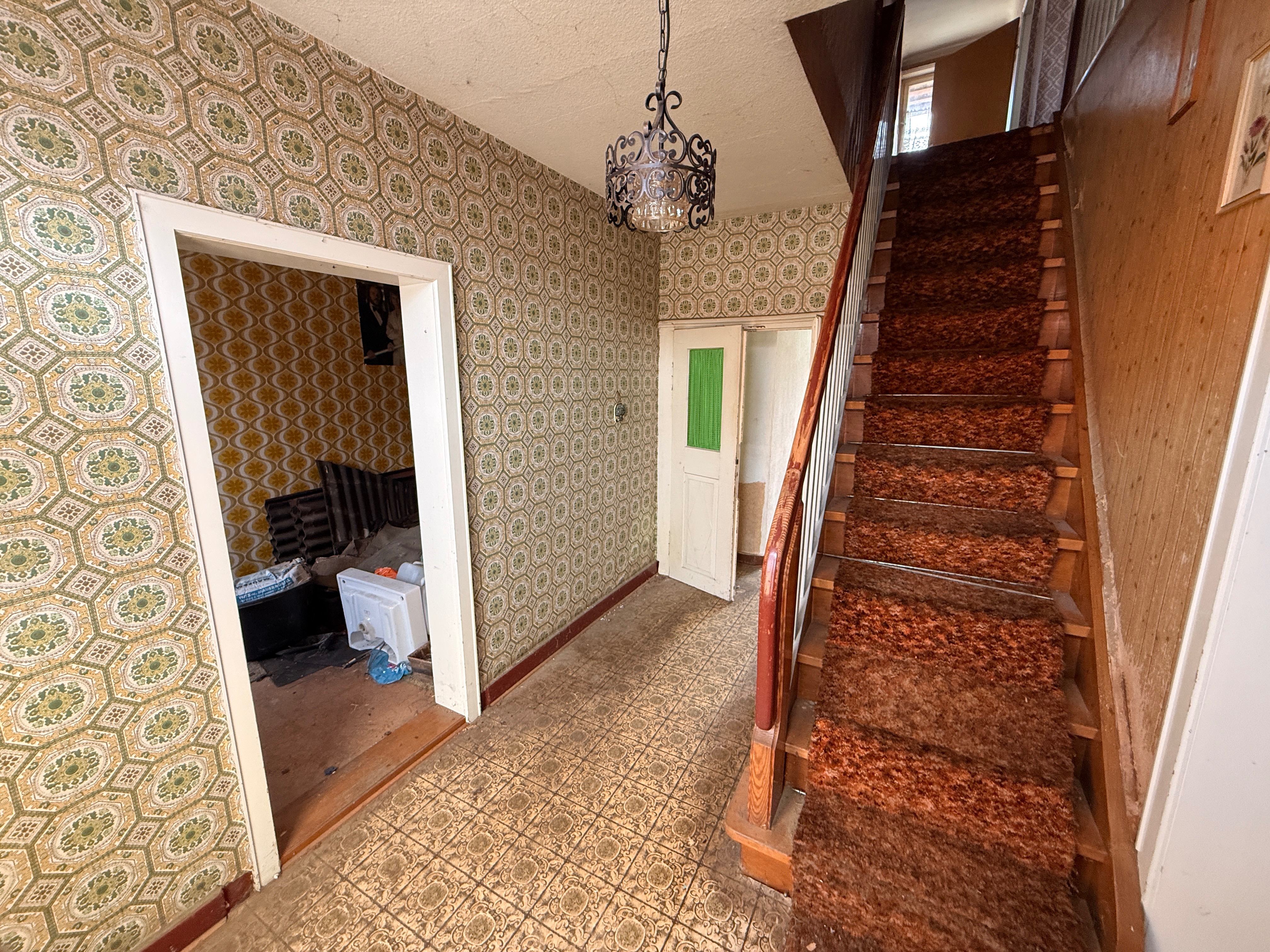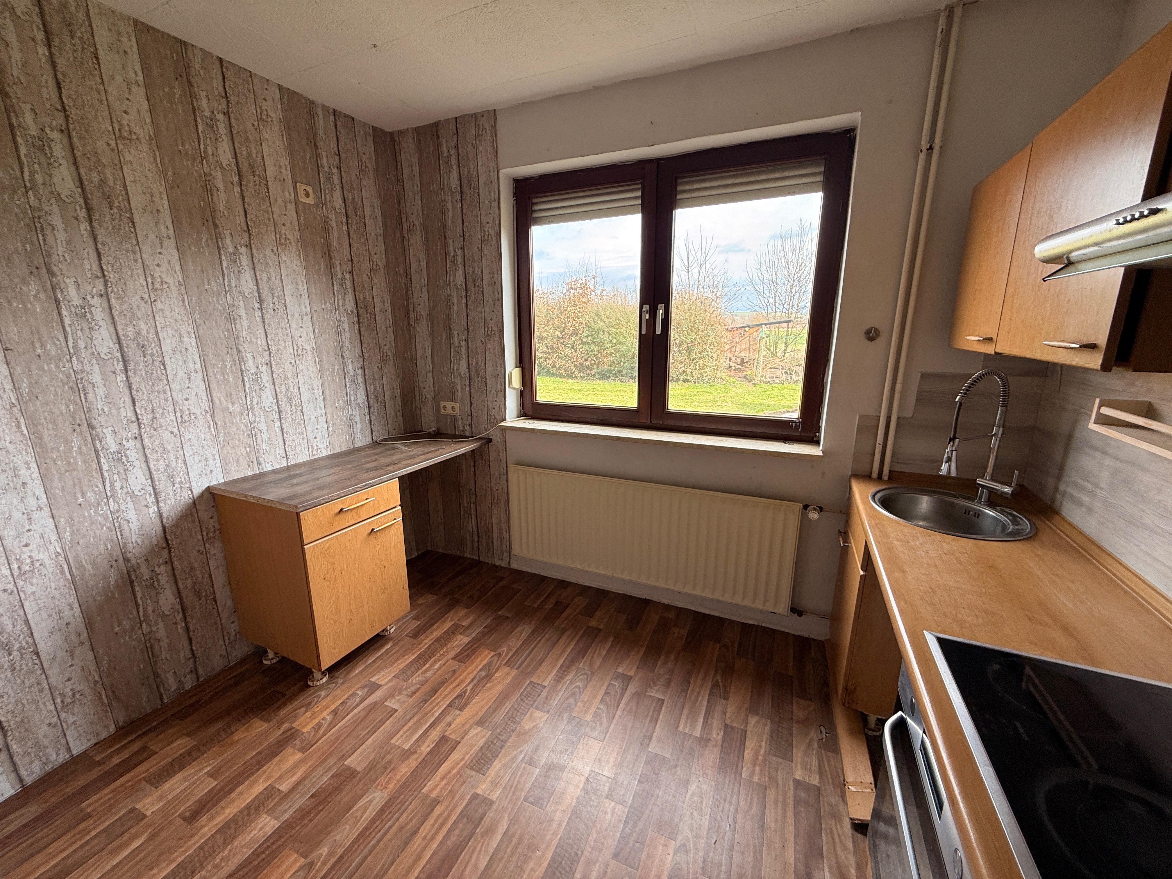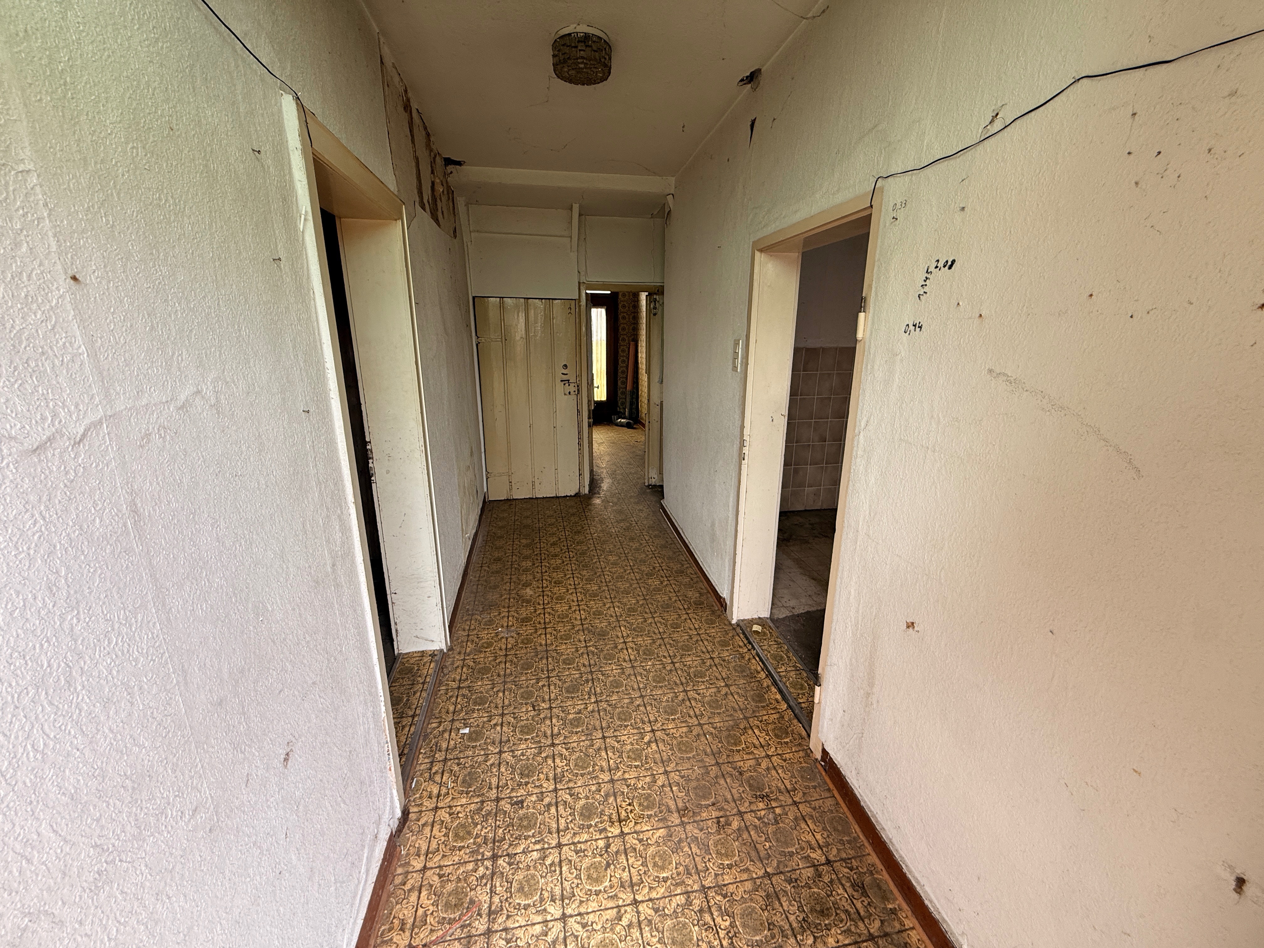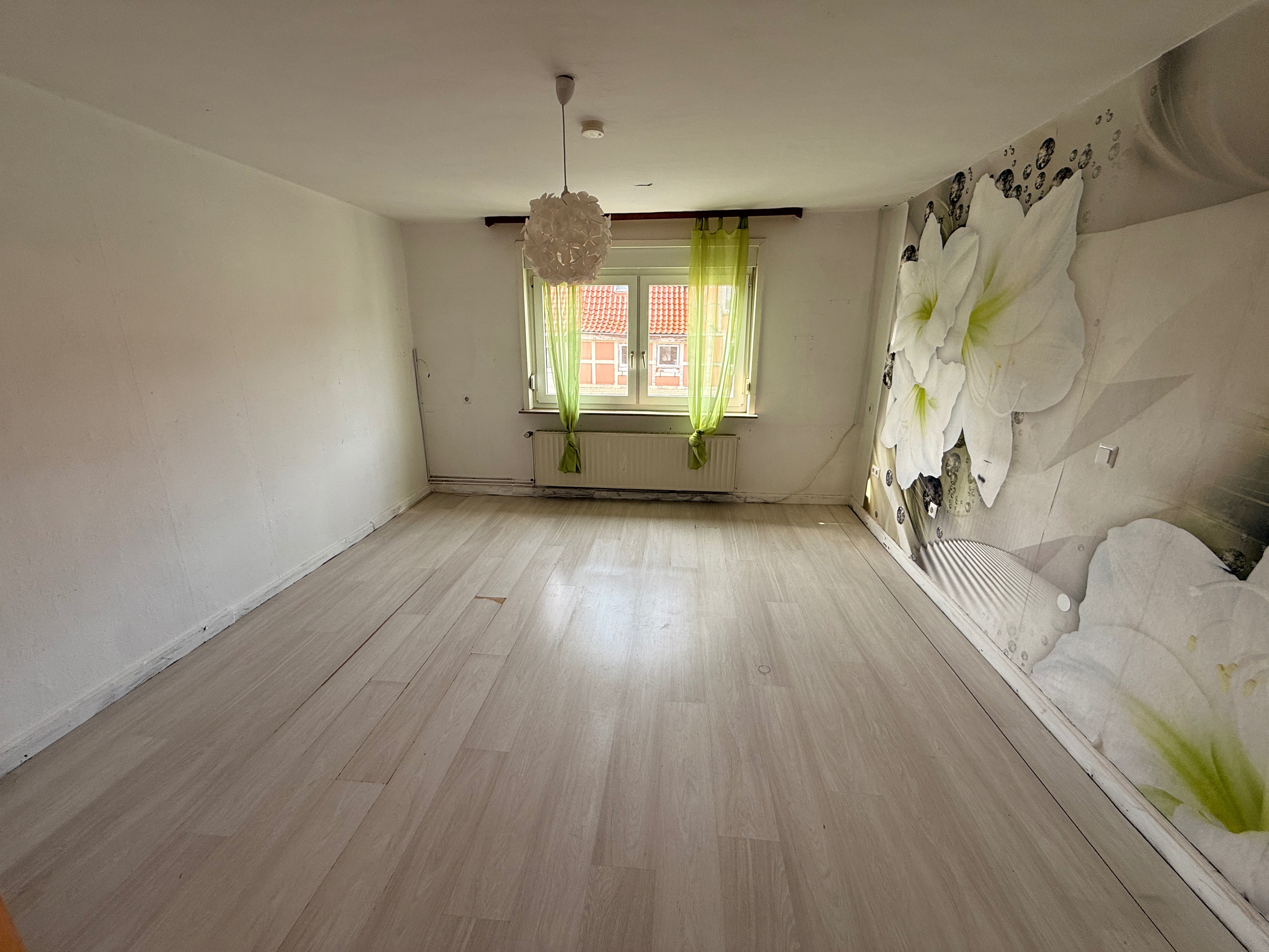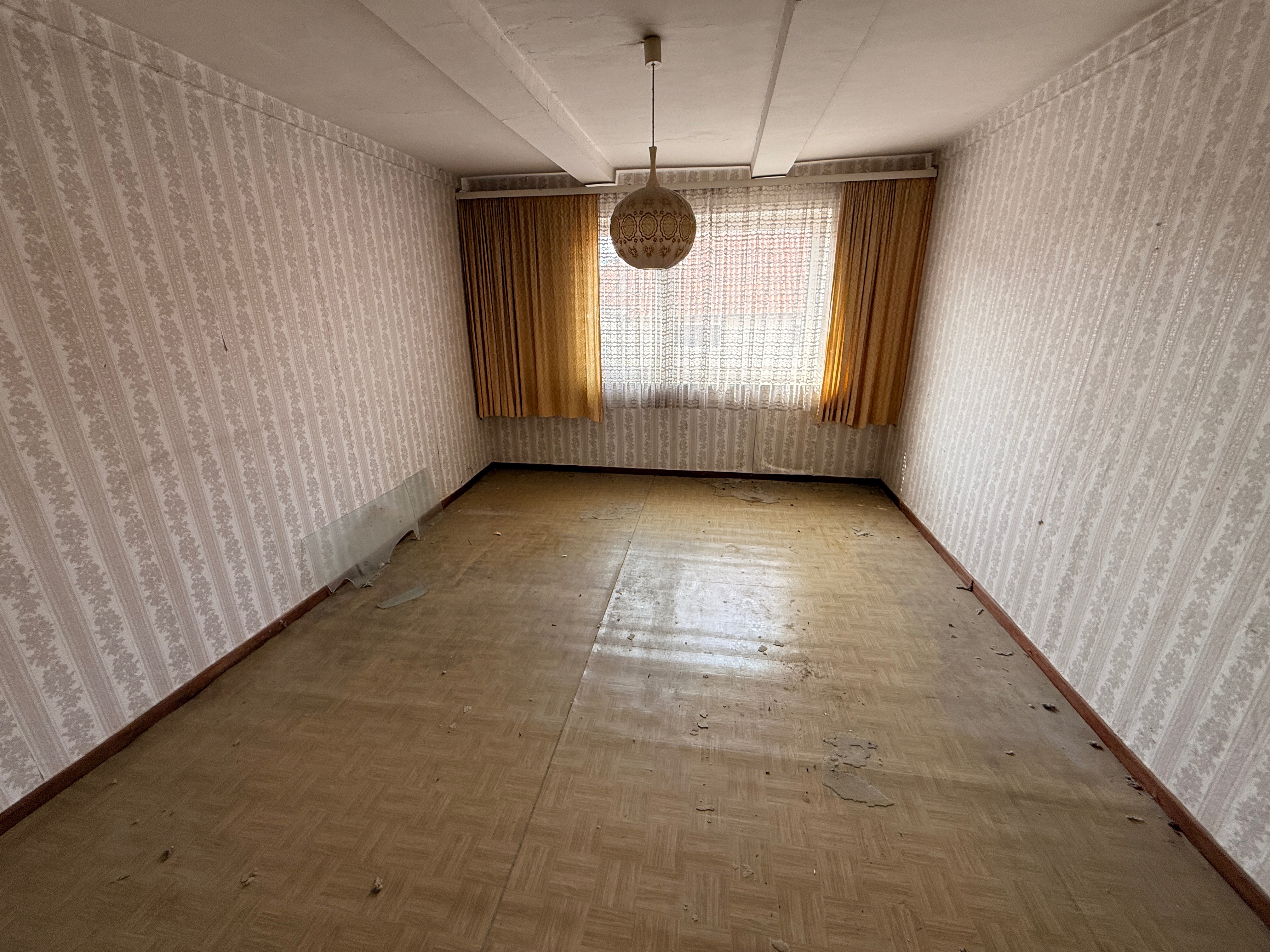 Die rechte Hälfte des Hauses umfasst insgesamt fünf Zimmer sowie eine Küche. Dieser Bereich ist vollständig sanierungsbedürftig und bietet somit die Möglichkeit zur individuellen Neugestaltung oder Erweiterung der Wohnfläche.